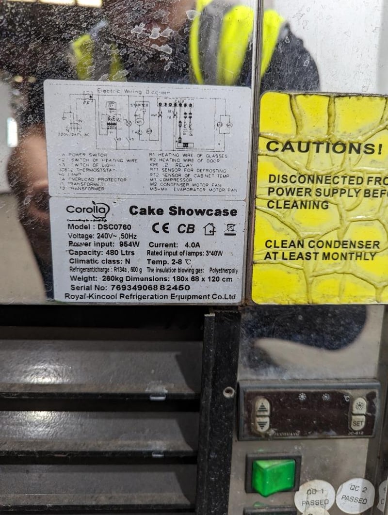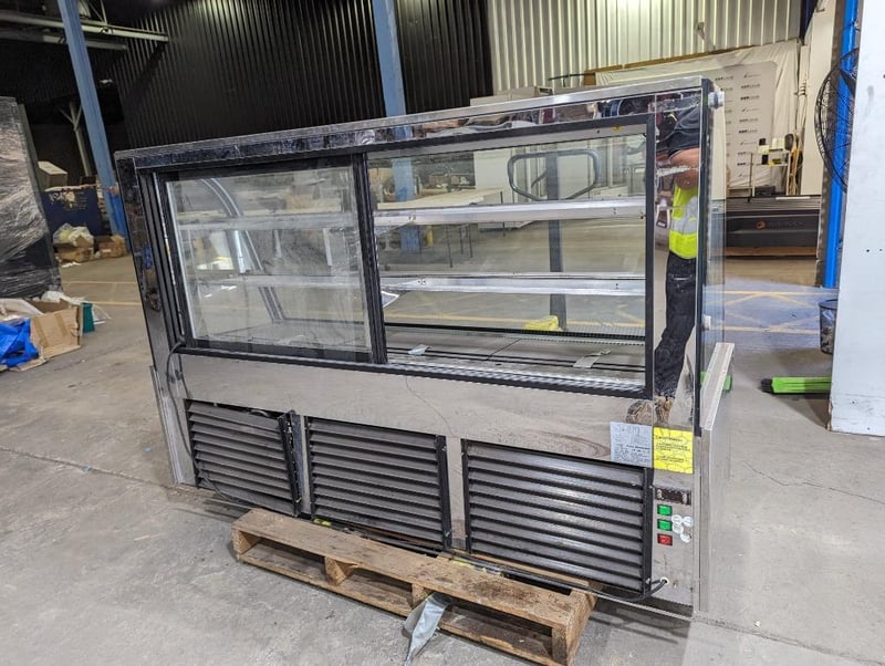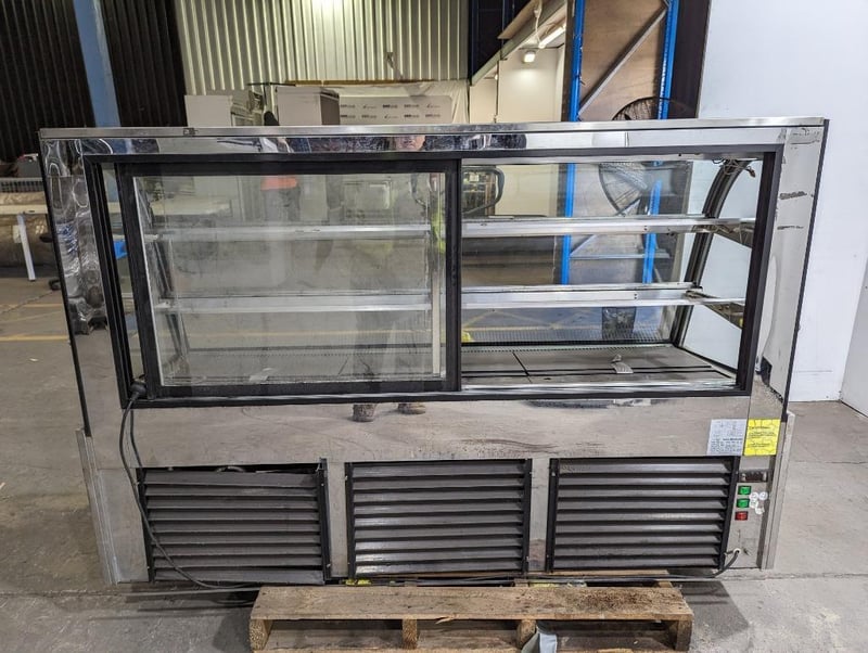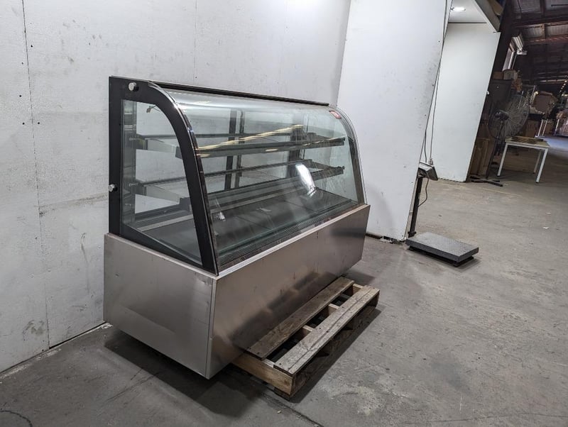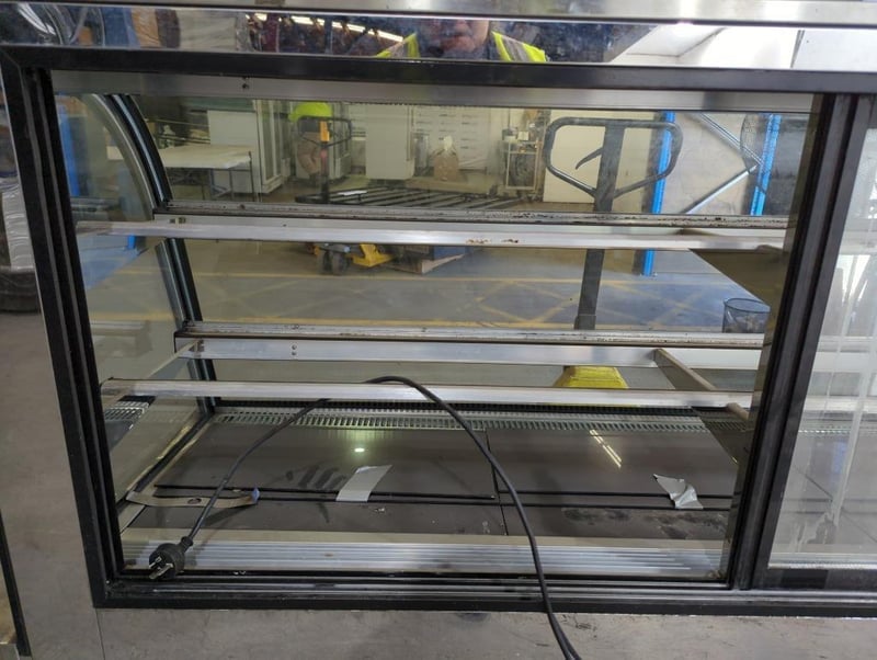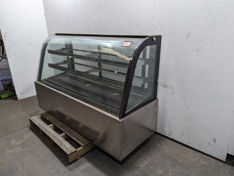 .2 sliding door Commercial Curved Glass Showcase Fridge. (250V)Missing 1 Sliding Door Behind FridgeNote, Untested, Signs of wear