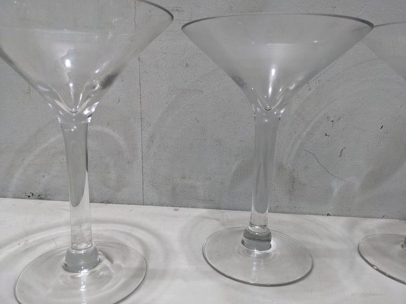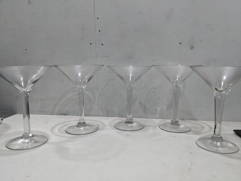 Set of 5 martini glasses. Oversized NOTE: Signs of wear and tear. Sold as a lot.