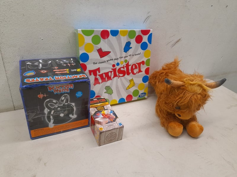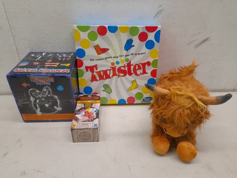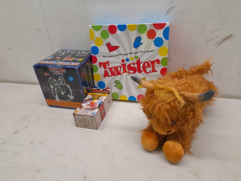 Twister Game, Bull Plushie, Reaction Tester, Shang-Chi Figurine Sold as lot