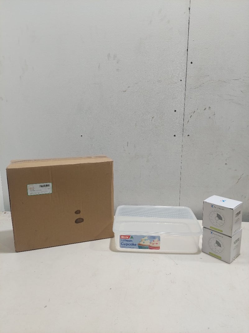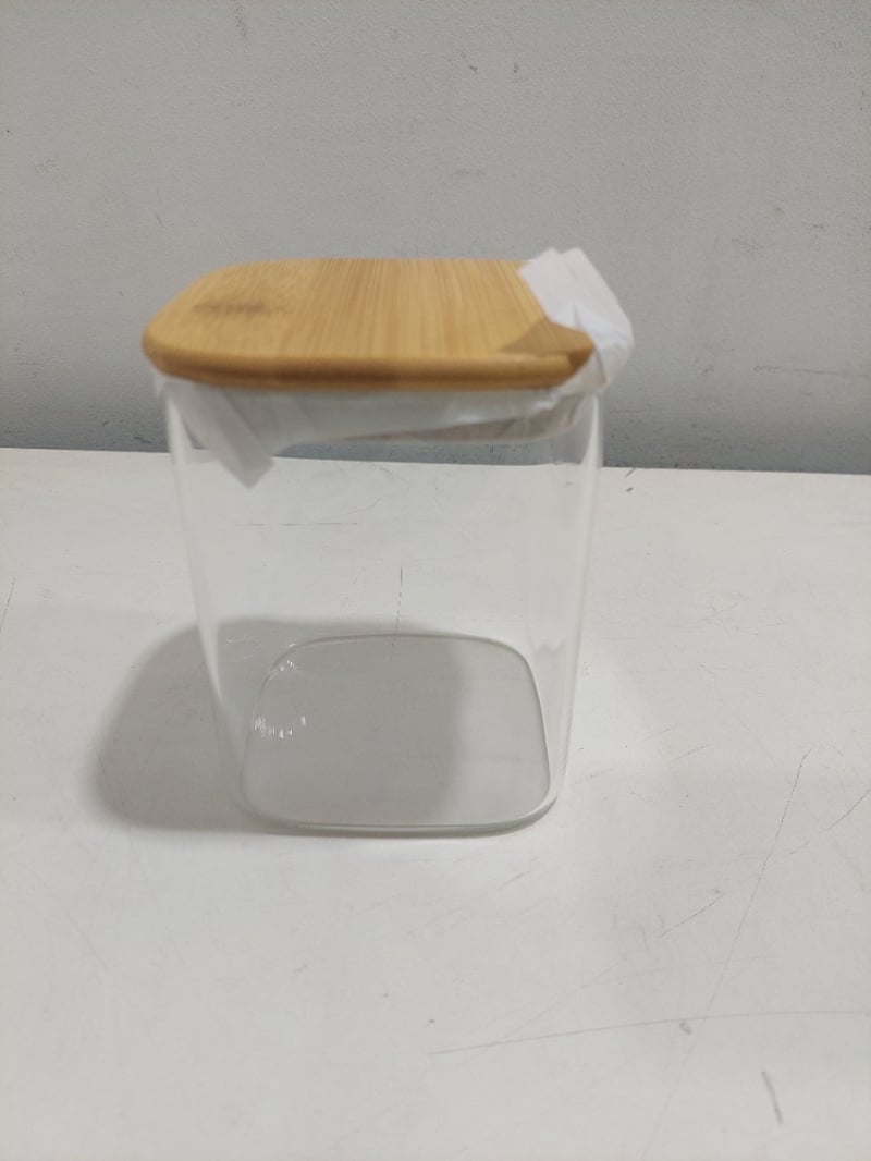 Assorted items, including plastic container, 6 glass storage jars and 60min visual timer.