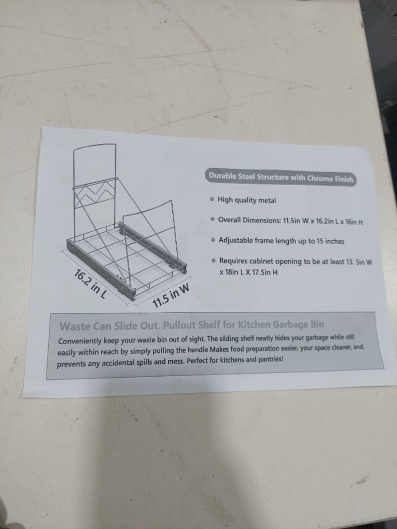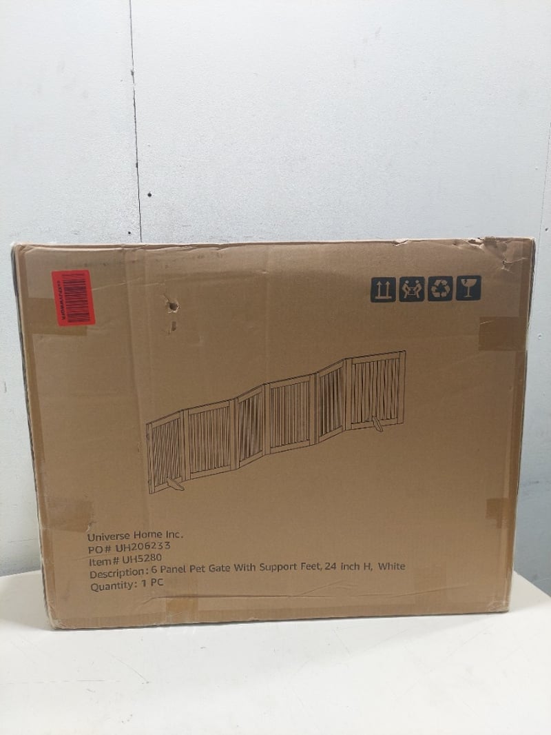 Assorted items including 6 pannel pet gate and pullout shelf for kitchen garbage bin.Sold as a lot.