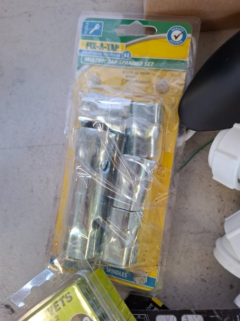Assorted lot, includes pipes, hose bits, locks, trowel & more