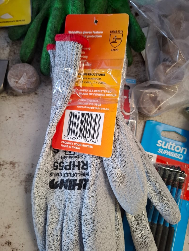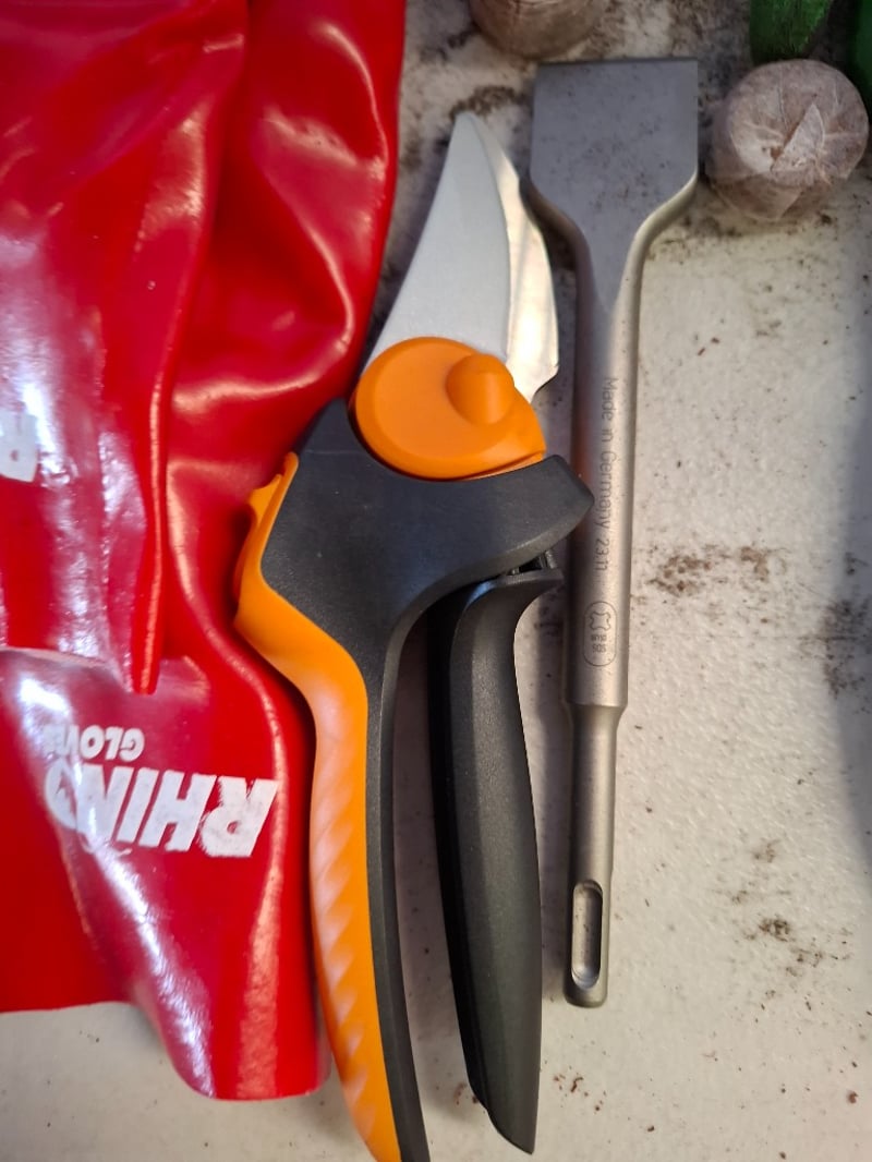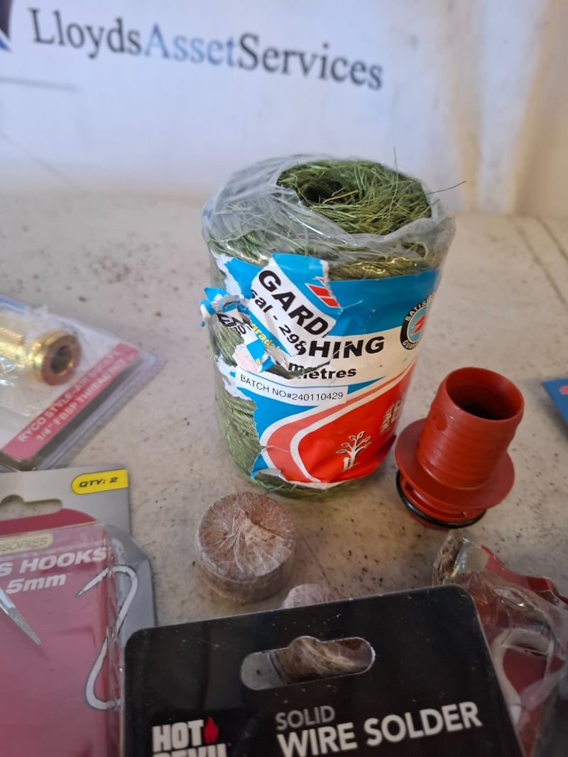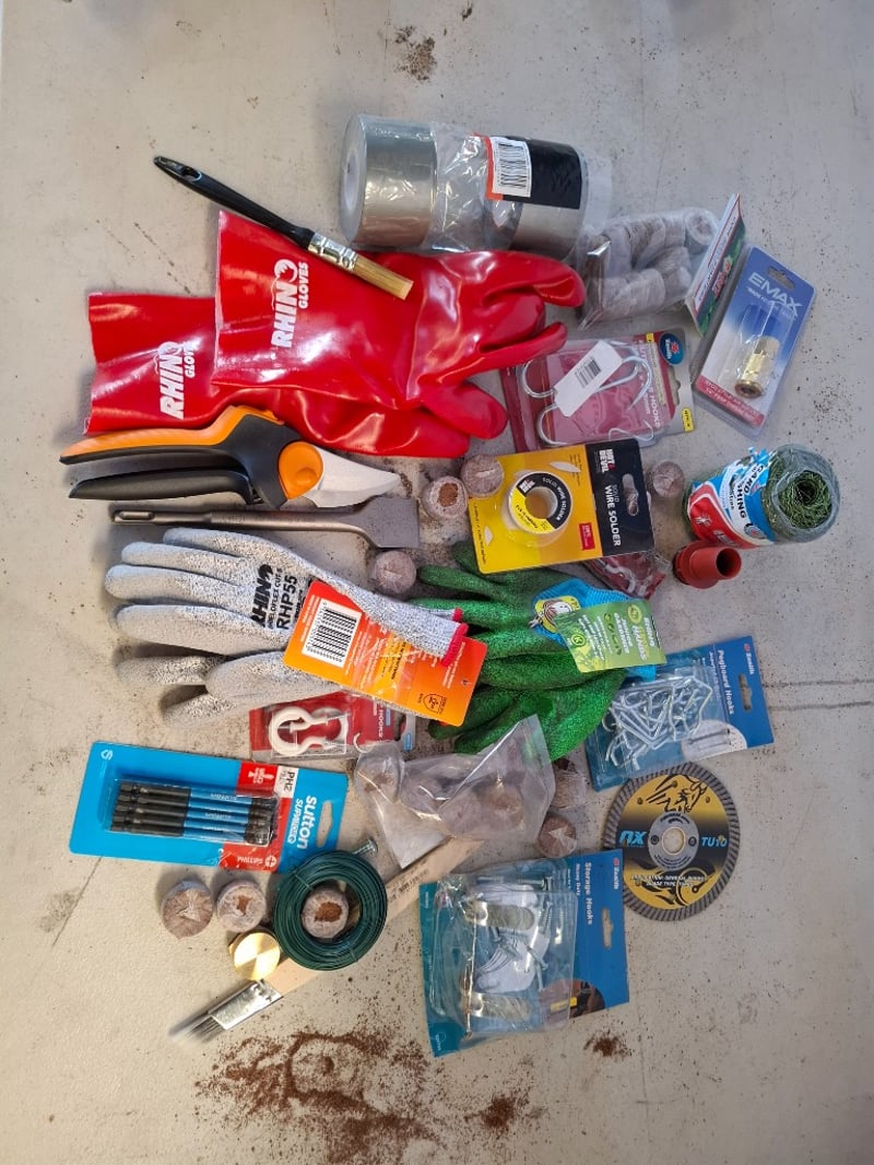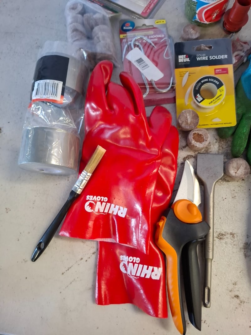 Assorted lot, including gardening gloves, gardening trimmers, Brushes, duct tape & more