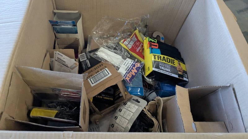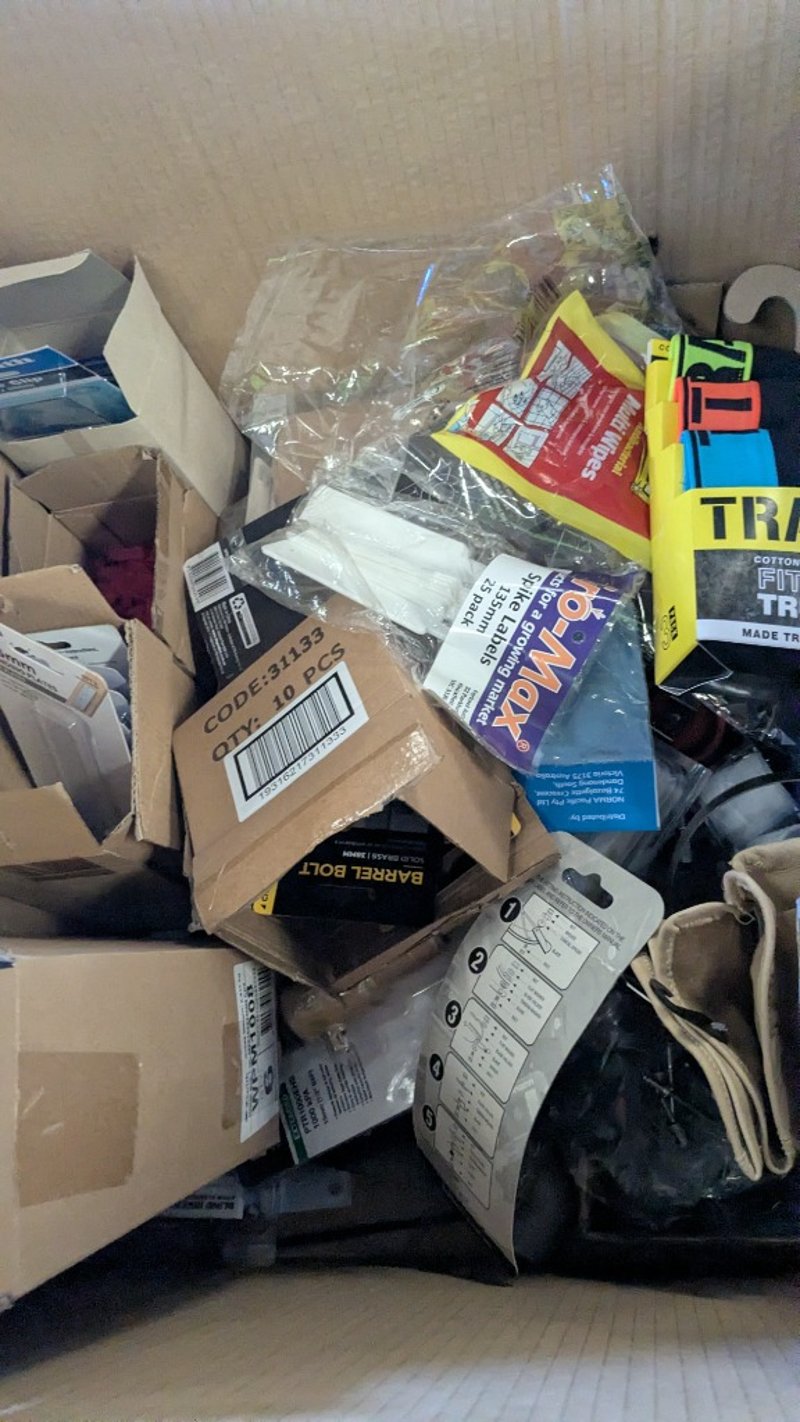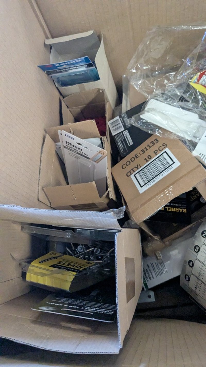Assorted Hardware Items, Includes Rivets, Nails, Spike Labels and more, Quantity to Box