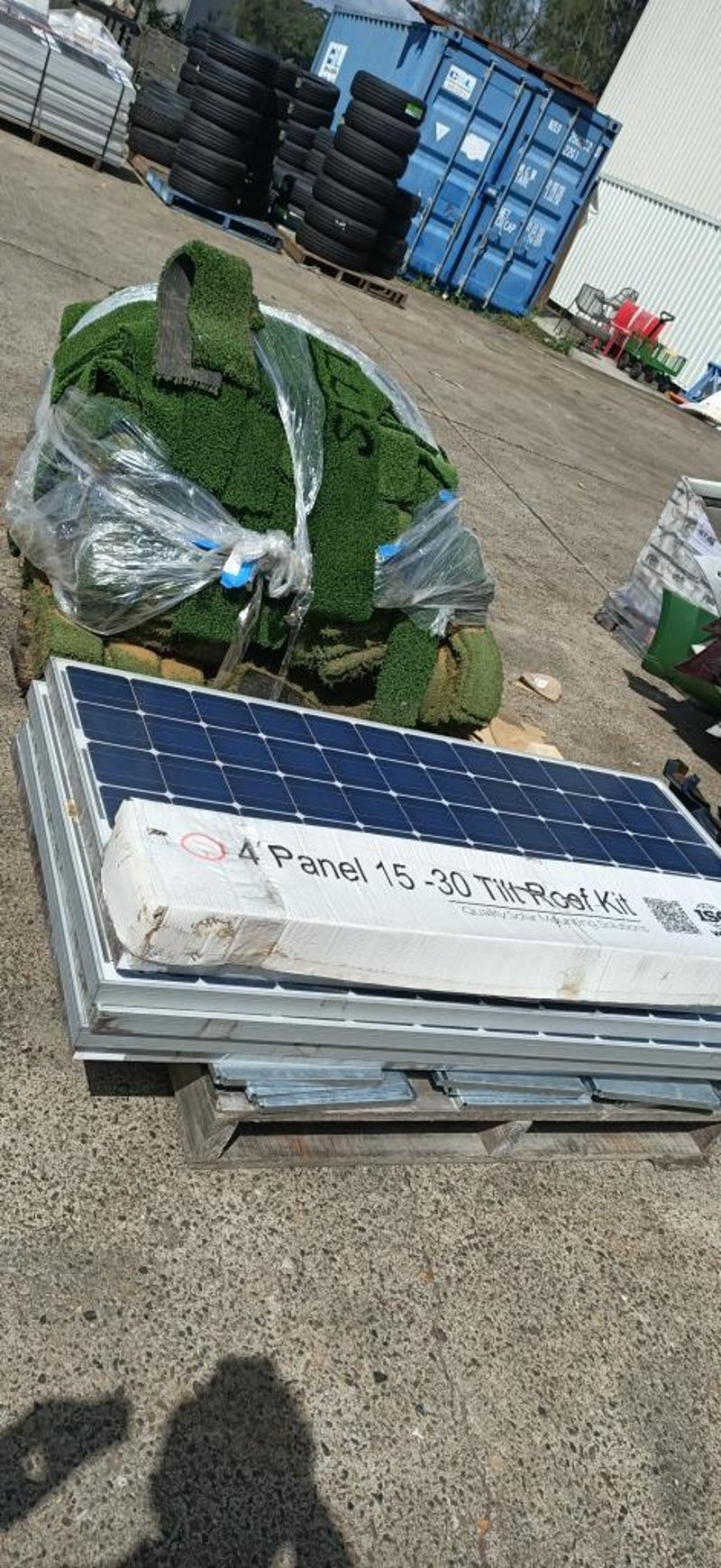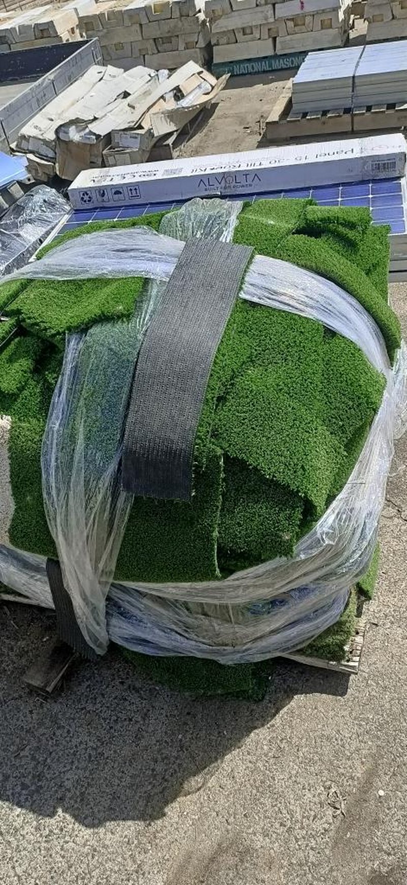 Pallet Of Solar Panels & Artificial Turf Offcuts SOLD AS LOT NOTE: PARTS & COMPONENTS MAY BE MISSING, UNTESTED NOTE: COLLECTION MUST BE WITHIN 48 HOURS OF AUCTION NOTE: PICK UP ONLY
