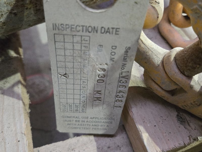 5.3 Ton Chain and Metal PolePole size: 8mmColour: yellowDescription: Includes Metal pole, Chain, sold as a lotNote: Collections are to commence from Monday 24th and finalise by 28th November , 7.30am to 3.30 pm Daily. NO Collections Thursday 20th & Friday 21st of November & Weekends. Lifting Available Onsite. Items not collected may be deemed abandoned.Full PPE required by all Transport Drivers and Bidders attending site(No Exceptions), Long Pants and Shirts, Safety Shoes or Boots, High Vise, and Hard Hat.All Auction Enquires please contact Mark David 0437318344, Site Collections contact Jason Moorefoot 0491 743028.Auction Site Address: Seabreeze Pde ,Northshore, Geelong, Vic.