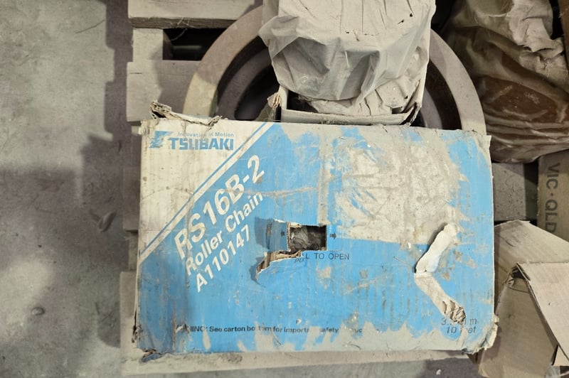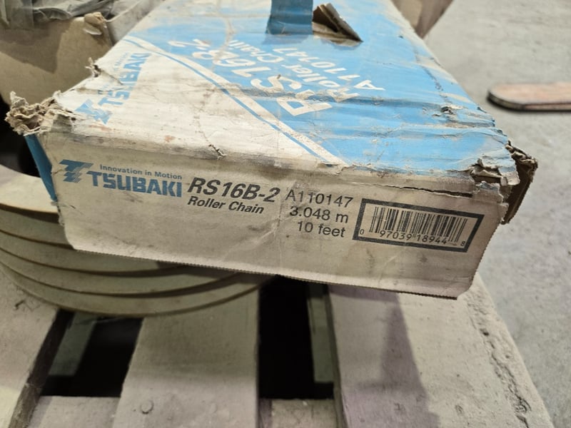 Parts Pallet Includes: Tsubaki RS16B Roller Chain Approx weight: 50kgMixed pallet lotNote: Collections are to commence from Monday 24th and finalise by 28th November , 7.30am to 3.30 pm Daily. NO Collections Thursday 20th & Friday 21st of November & Weekends. Lifting Available Onsite. Items not collected may be deemed abandoned.Full PPE required by all Transport Drivers and Bidders attending site(No Exceptions), Long Pants and Shirts, Safety Shoes or Boots, High Vise, and Hard Hat.All Auction Enquires please contact Mark David 0437318344, Site Collections contact Jason Moorefoot 0491 743028.Auction Site Address: Seabreeze Pde ,Northshore, Geelong, Vic.