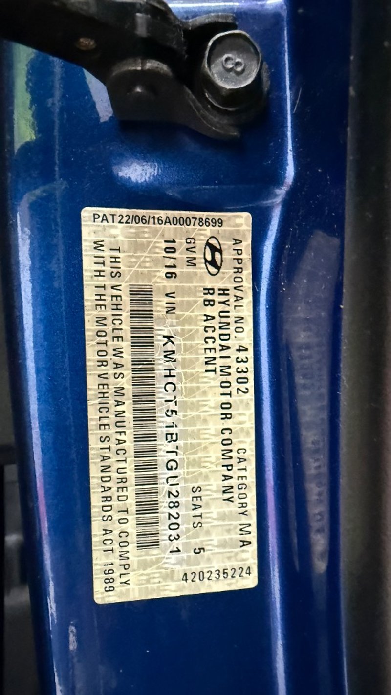 2016 Hyundai Accent RB4 Active Year: 2016 Make: Hyundai Model: Accent Series: RB4 Badge: Active Body: 5-Door Hatch Drive Type: Front wheel drive Odometer: Indicating 79,453 Engine: 1.4 I4 Petrol Transmission: Continuously variable Colour: Bluw Seats: 5 Description/extras: Air Conditioning, Power windows. transmission or clutch issues, engine light on. Price Guide - $6950-$8850 (Based on Unmodified Vehicle) VIN: KMHCT51BTGU282031 ENG No: G4LCGU580473 AS PER PPSR #PCV #ONETOTEN (Key #A47 Carrara) Lloyds stock #587478+1