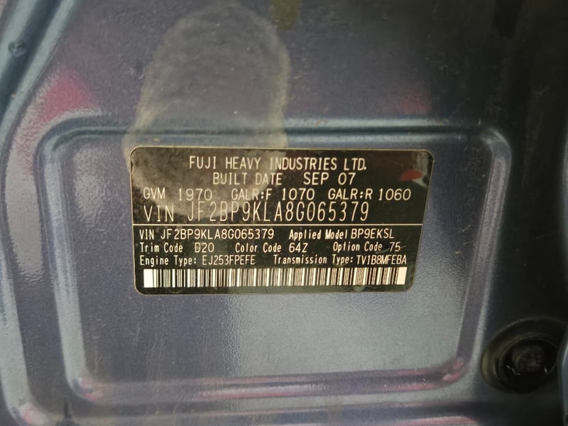 2007 Subaru Outback BP 2.5i Year: 2007 Make: Subaru Model: Outback Series: BP Badge: 2.5i Body: 5-Door Wagon Drive Type: All wheel drive Odometer: Indicating 314,651 Kilometers Engine: 2.5 Petrol Transmission: Automatic Colour: Blue Seats: 5 Description/extras: Power windows, SRS, Power seats, Cruise control, Towbar, Central locking, CD player, Log books/Owners manual. Scratches, Dents. Engine light on. traction control light on dash. VIN: JF2BP9KLA8G065379 ENG No: D262034 AS PER PPSR #PCV (Key #A15) Lloyds stock #990765+1