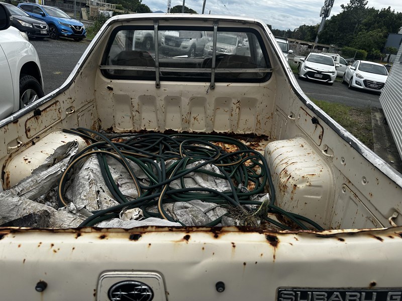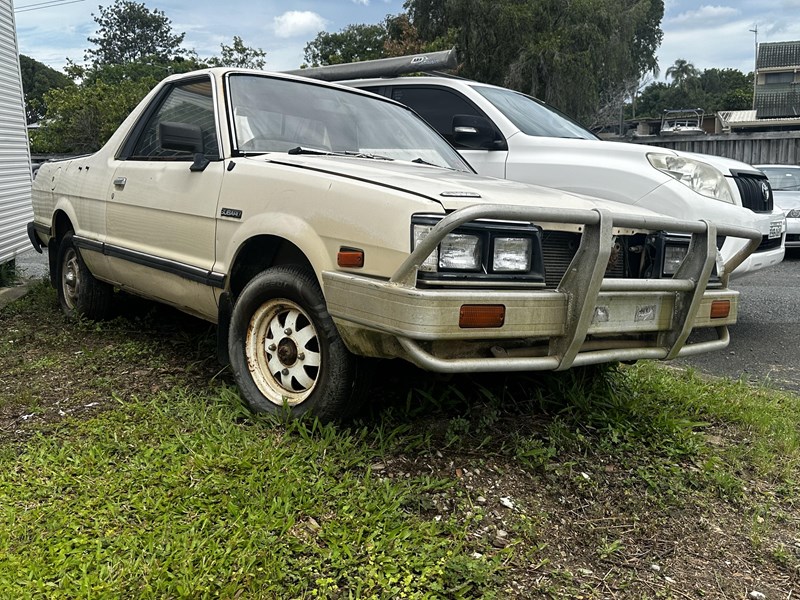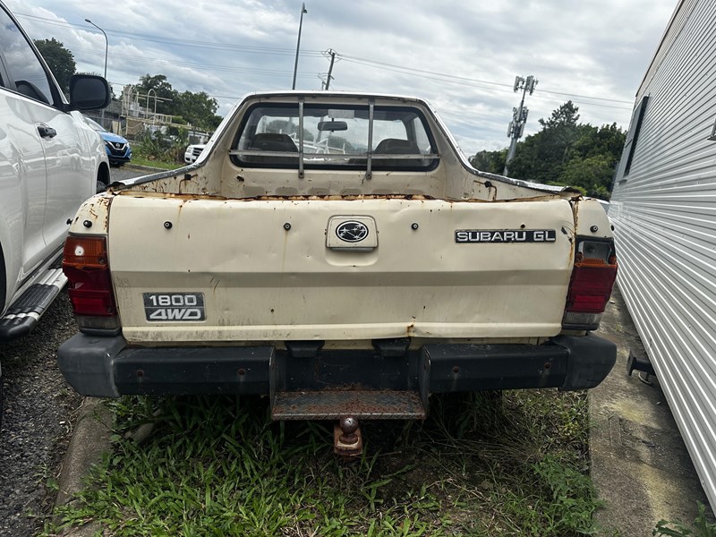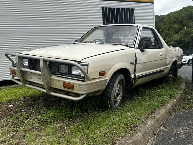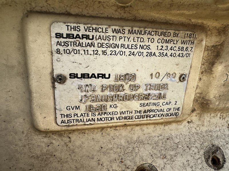UNRESERVED 1990 Subaru Brumby 1800 4WD Year: 10/90Make: SubaruModel: 1800Body: UtilityColour: CREAMSeats: 2Doors: 2Transmission: AutoOdometer Indicating: 285,967kmsDescription: No keys-Non runner, Abandoned and sitting onsite for 3+ years, heavy rust, bonnet not attached, damaged panels/tyres and more.Note: Will require winch/tow truck to remove.VIN: JF3AU5MR01G525541Key#N/A - Carrara