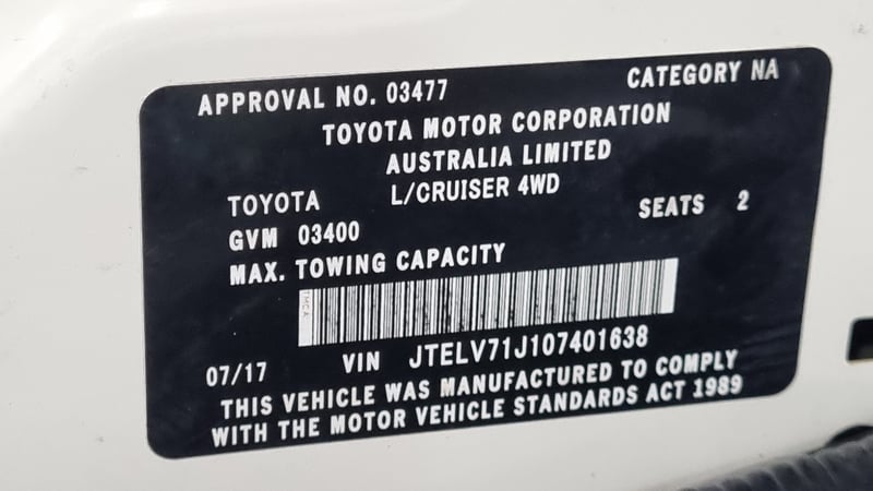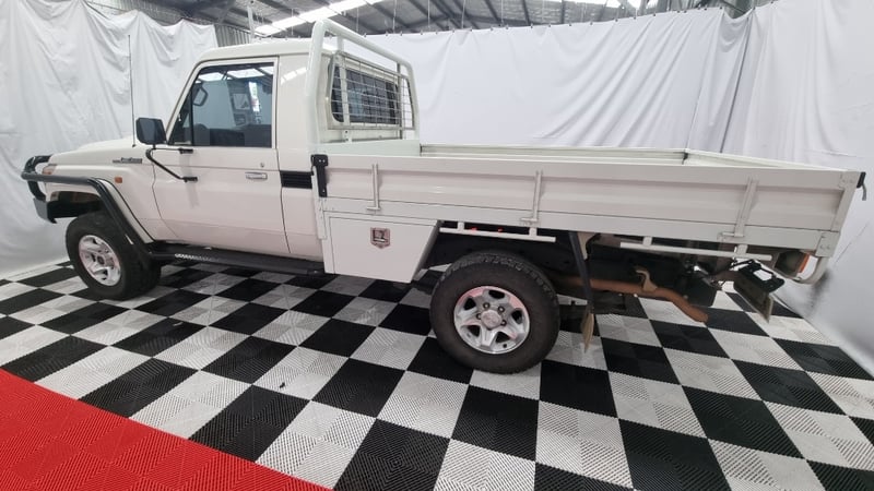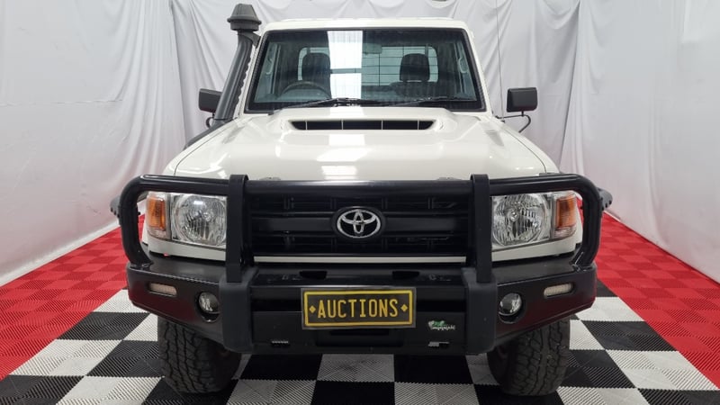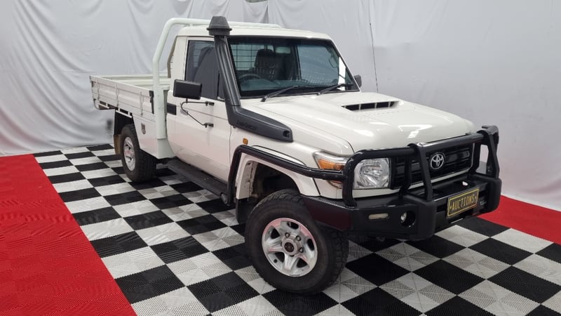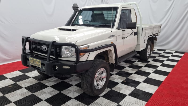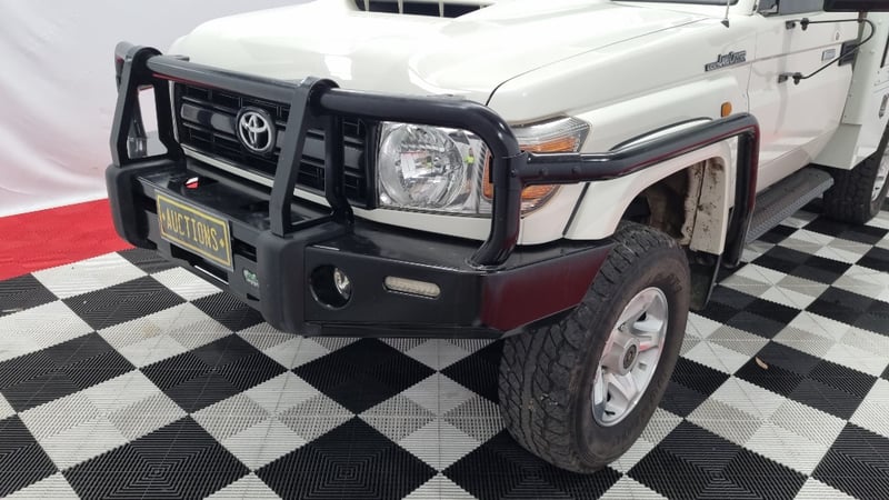 2017 Toyota Workmate VDJ79R Workmate Year: 2017 Make: Toyota Model: Workmate Series: VDJ79R Badge: Workmate Body: Single Cab Chassis Drive Type: Four wheel drive Odometer: Indicating 149,797 Kilometers Engine: 4.5 V8 Turbo Diesel Transmission: 5-Speed Manual Colour: White Seats: 3 Description/extras: Air Conditioning, Alloy wheels, Towbar, Bullbar, Central locking, CD player, Log books/Owners manual. Iron Man Bull Bar Brush Bars Side Steps Redarc Tow pro Elite Brake Controller Snorkel Steel Tray With Sides Undertray Toolboxes Vinyl Floor Vinyl Seats Marks and Scratches See Photos and Video. Price Guide - $64,000 - $70,000 (Based on Unmodified Vehicle) VIN: JTELV71J107401638 ENG No: 1VD3088977 AS PER PPSR (Key #NC17) Lloyds stock #1032536+1 #PCV