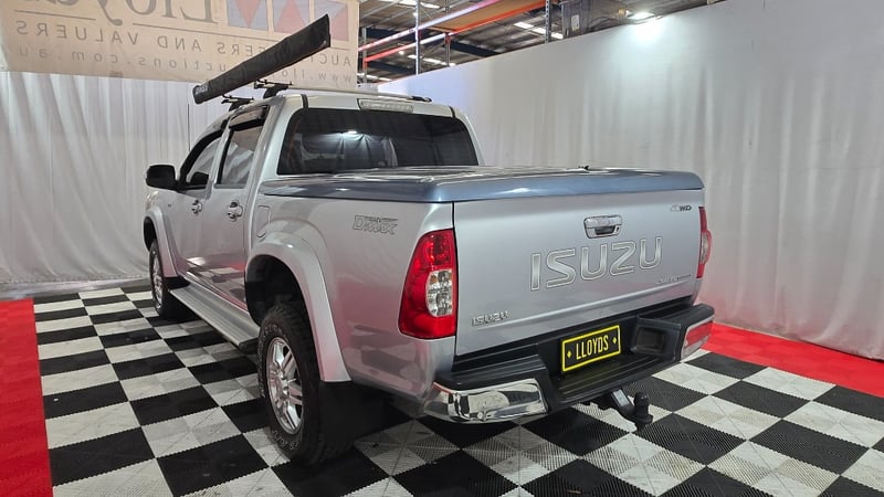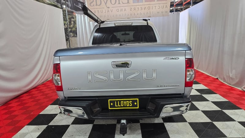 2011 Isuzu D-MAX LS Year: 2011 Make: Isuzu Model: D-MAX Series: LS Body: Dual Cab Chassis Drive Type: Four wheel drive Odometer: Indicating 295,411 Kilometers Engine: 3.0 Turbo Diesel Transmission: 5-Speed Manual Colour: Silver Seats: 5 Description/extras: Power windows, SRS, Cruise control, Towbar, Bullbar, Central locking, Owner's manual. paint chips on Lid. VIN: MPATFS85HBT108142 ENG No: JF7118 AS PER PPSR (Key #A25) Lloyds stock #1031788+1 #PCV