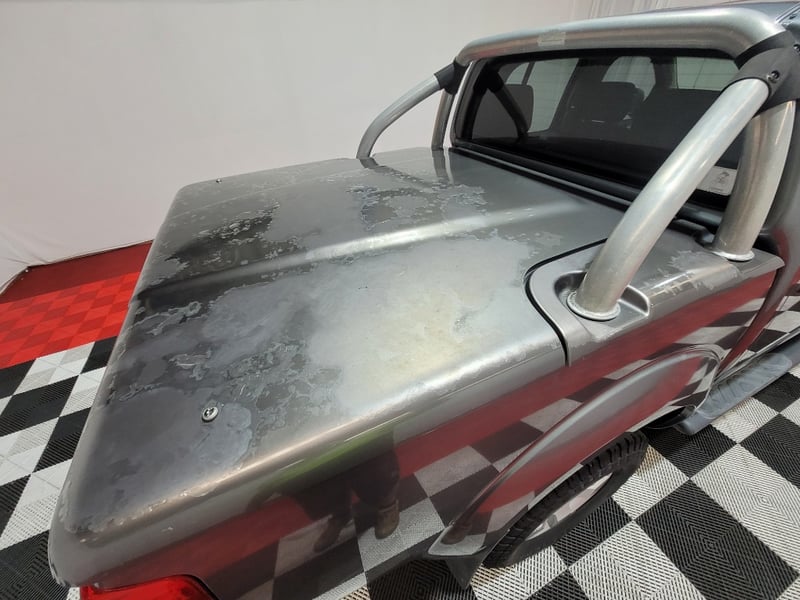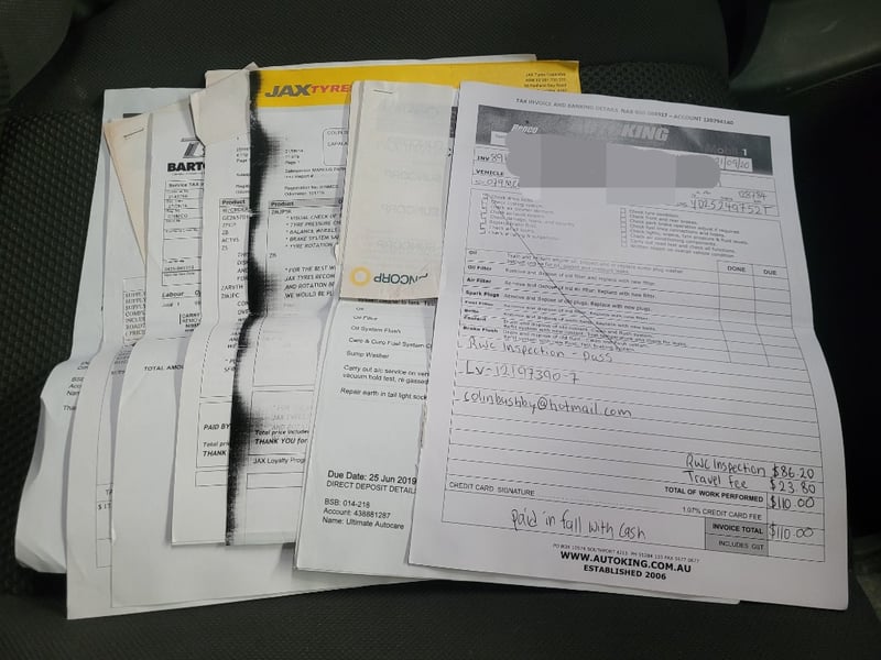 Aftermarket Kenwood head unit with bluetooth media, floor mats, hard top tray tub cover, side steps, nudge bar, some service receipts Minor marks dents and scratches, interior minor marks and wear, air bag warning light on dashboard, steering wheel and side mirror controls do not operate, paint and trim peal and imperfections, air-con fan noise, inspection recommended.