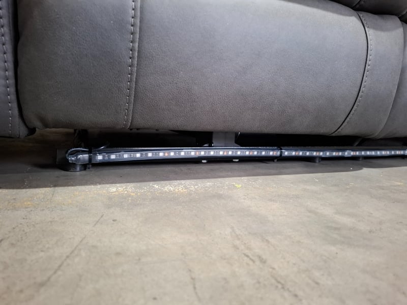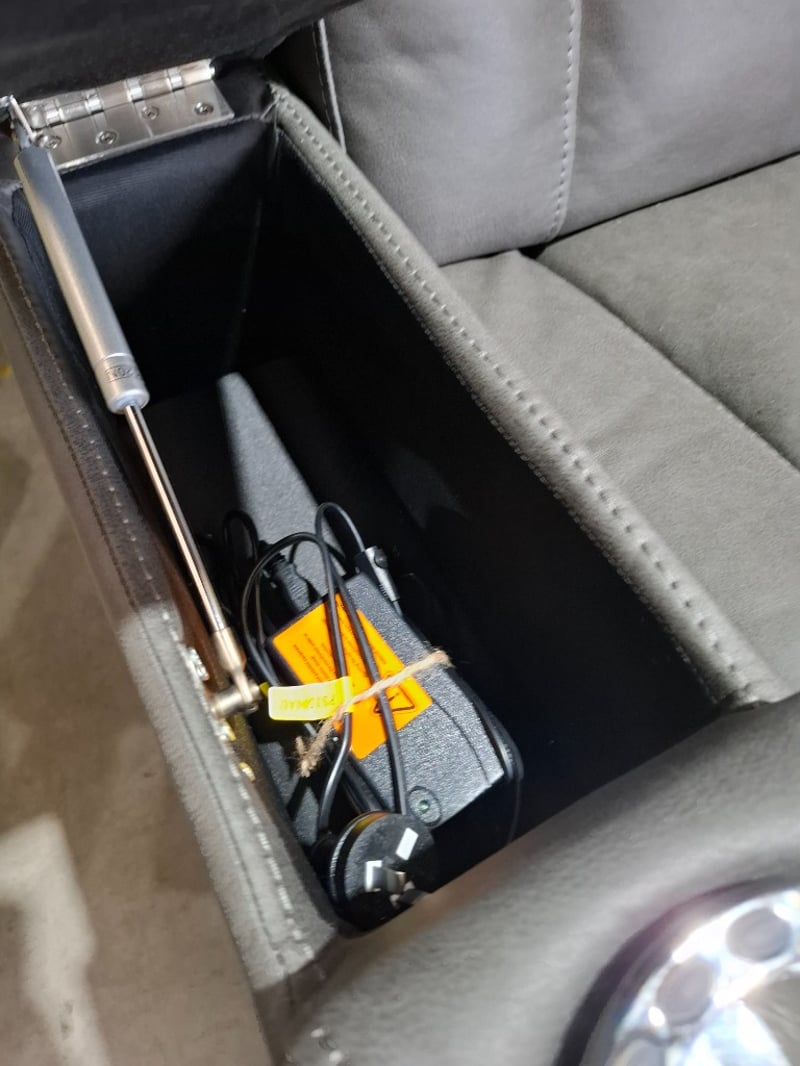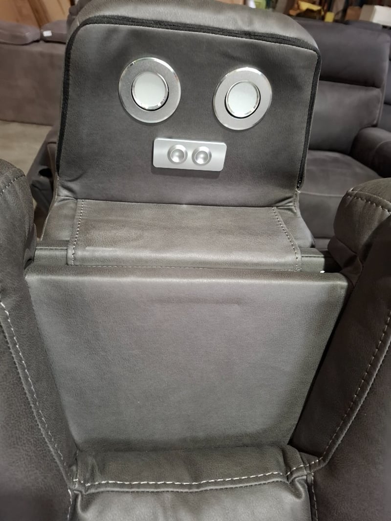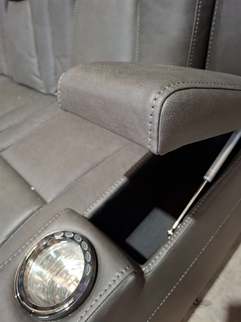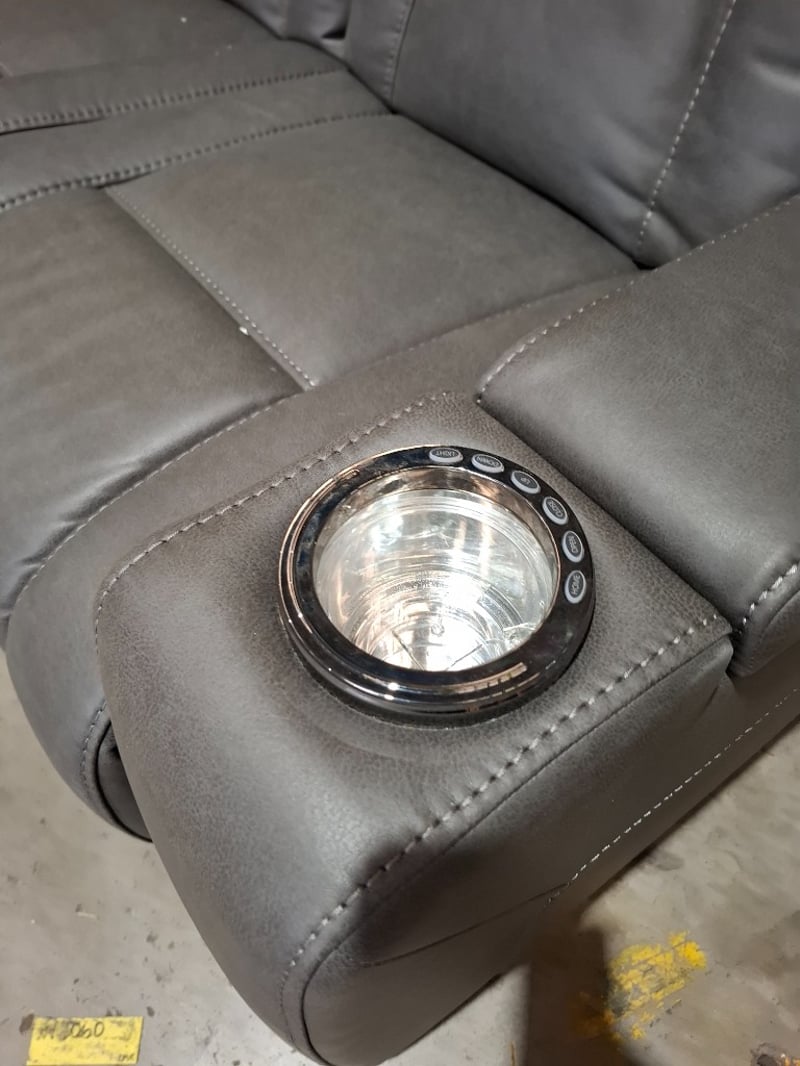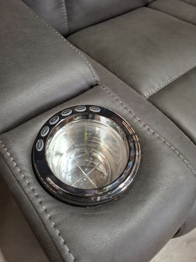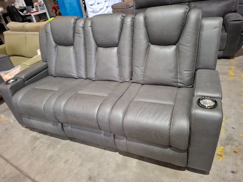 3 seat electric recliner couch, dark green forest leather style, LED’s, 2 cup holders,2 storage compartment reading lights Approximate Dimensions: 204cm (W) x 100cm (D) x 110cm (H)NOTE: INSPECTIONS RECOMMENDED, MINOR CLEANING REQUIRED