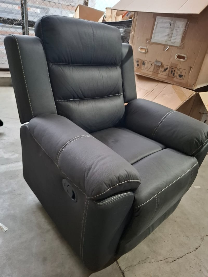 1 seater pull action recliner, leather style, charcoal