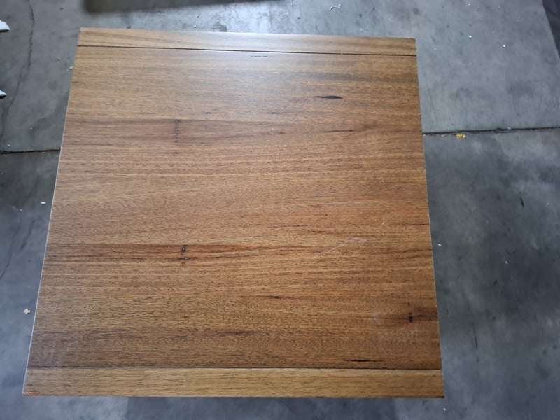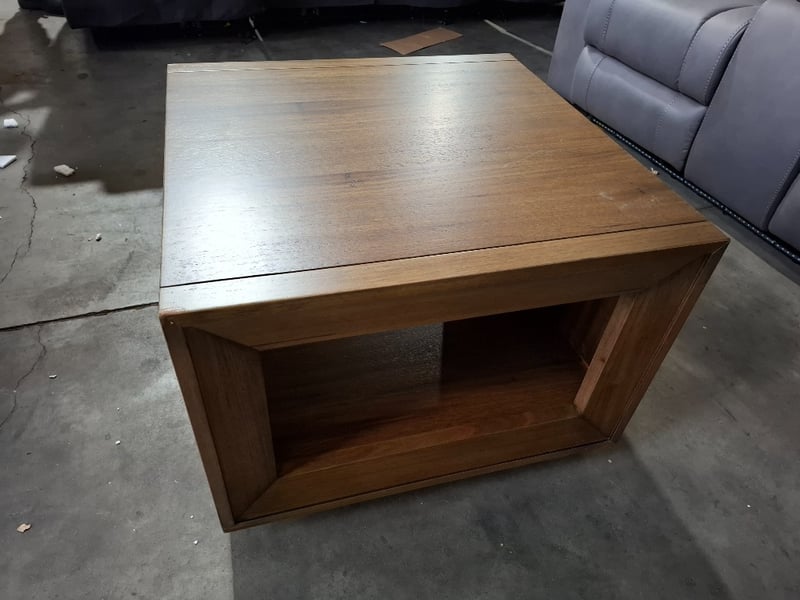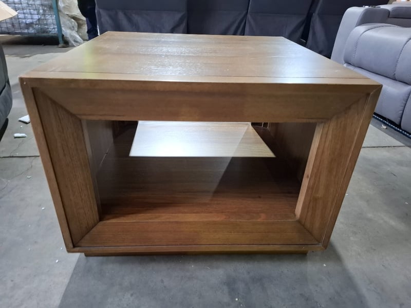 Lamp Table, wooden lookApproximate Dimensions: 65 cm (W) x 65 cm (D) x 50 cm (H)NOTE: INSPECTIONS RECOMMENDED, MINOR SCUFFS