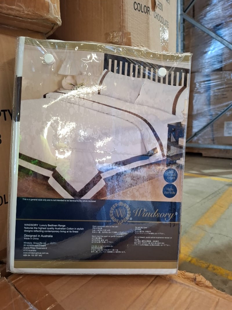 Box of Queen Bed Duvet Sets, Product Code: WCS09103-178, Includes One Cover and 2 Standard Pillow Cases, Colour: White/Chocolate