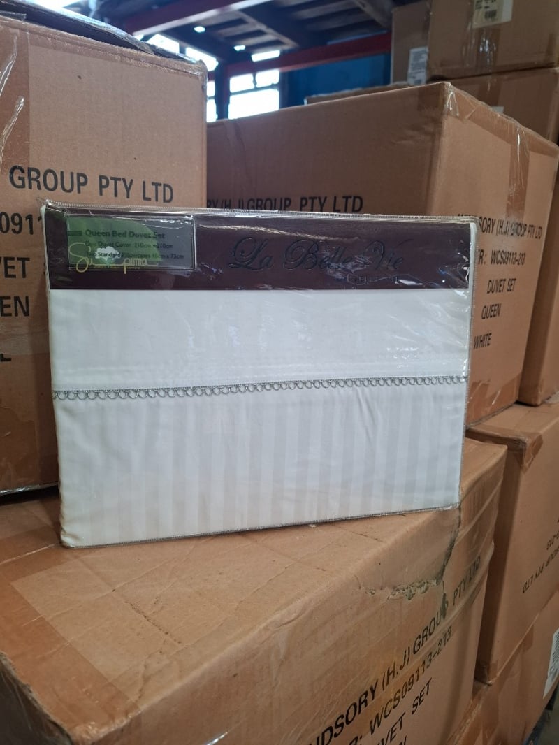 Box of Queen Bed Duvet Sets, Product Code: WCS09113-213, Includes One Cover and 2 Standard Pillow Cases, Colour: White