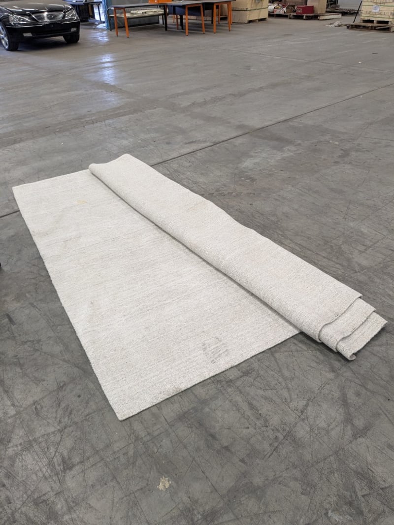 RRP$2655 Globewest Tepih Dune Rug in Oatmeal. Large Rug, Light Beige & Light Gray, Subtle Pattern, Soft Fabric Weave Style Finish Dimensions : 2.5mx3m Note: Some Soil Marks & Stains