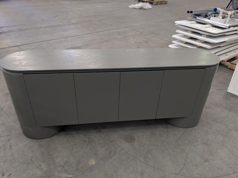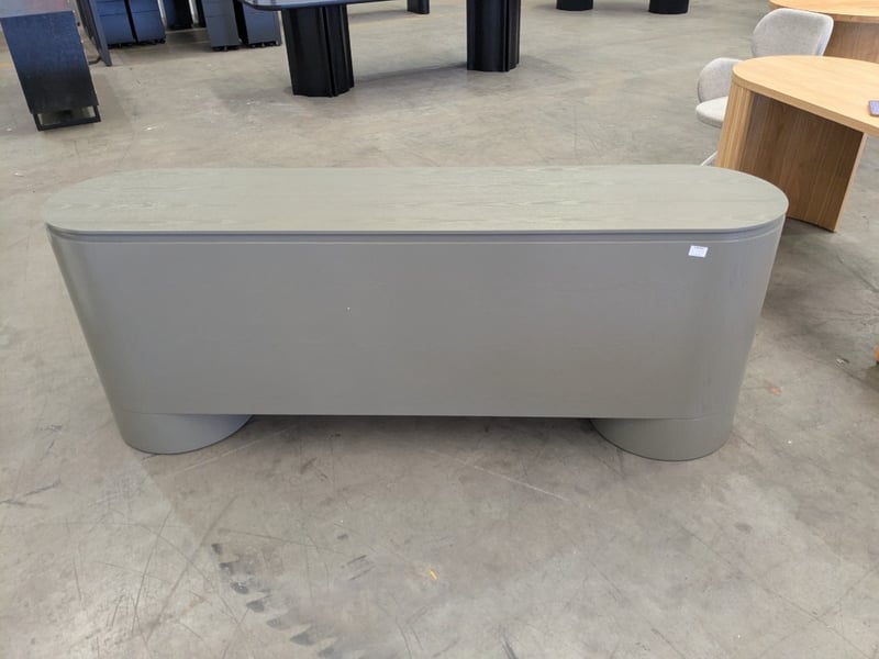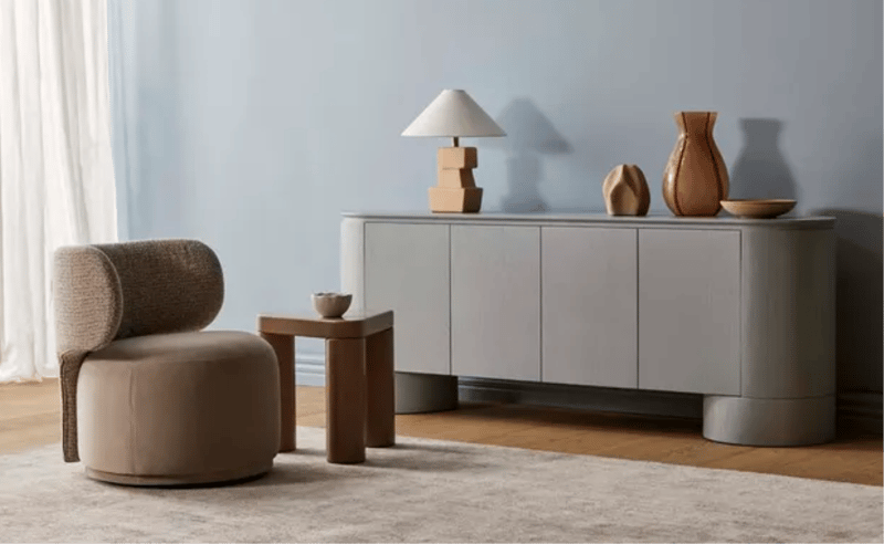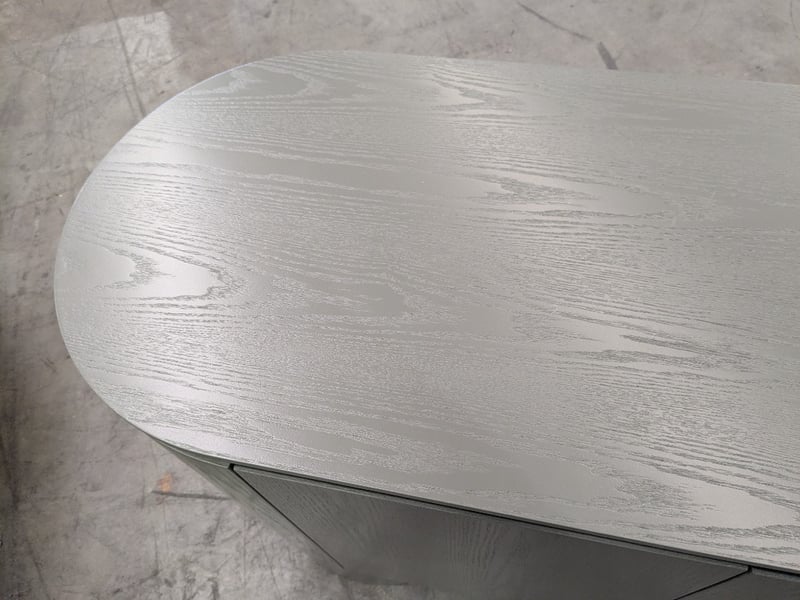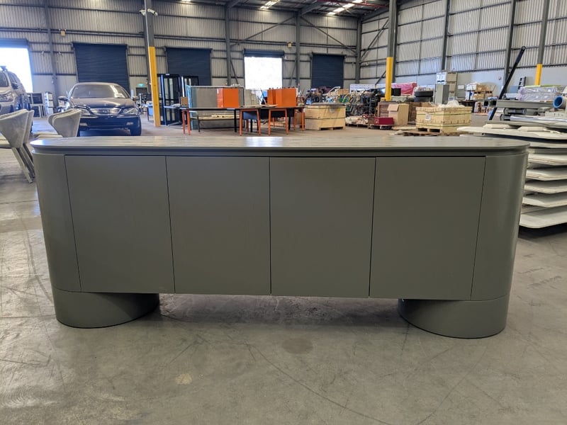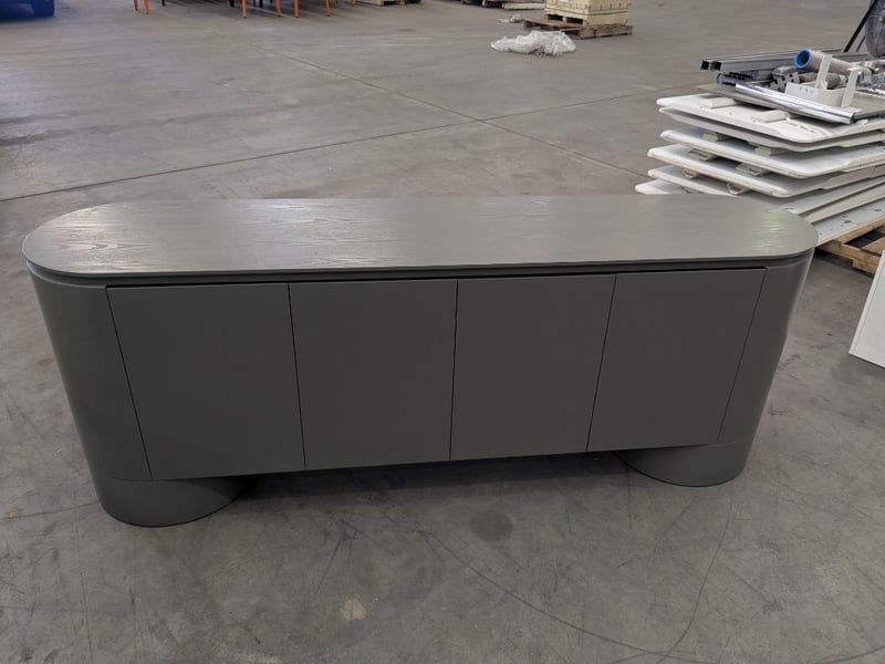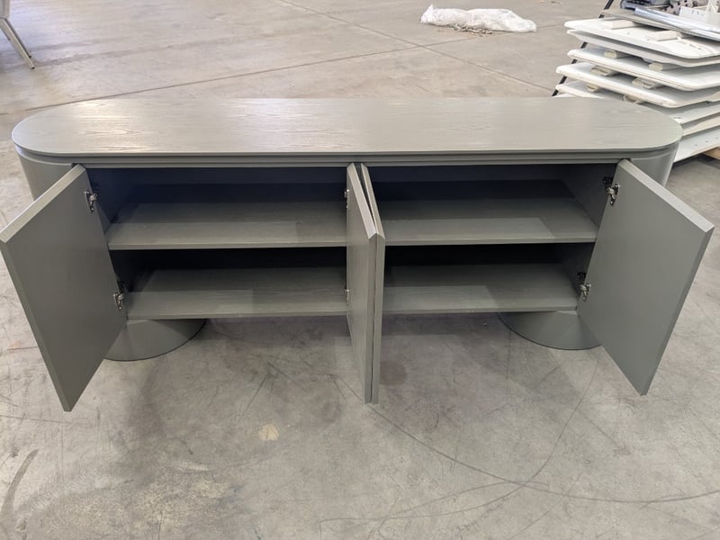 Elegant ash-veneer buffet with a minimalist silhouette, featuring bold circular legs and a four-door configuration that offers both style and storage. Constructed from Ash Veneer + MDF with a PU sealer.