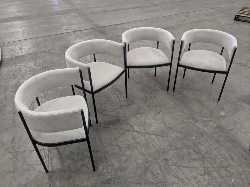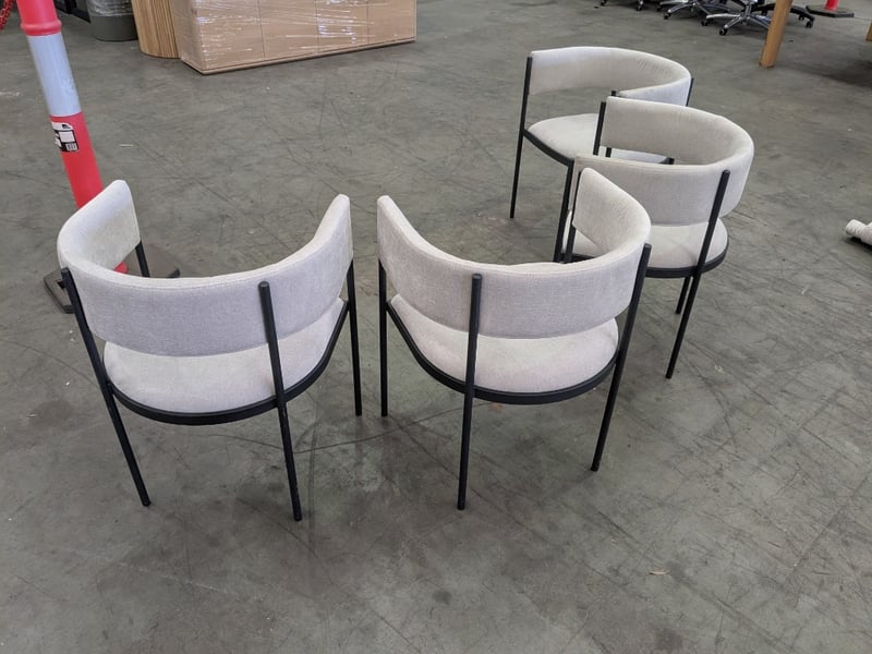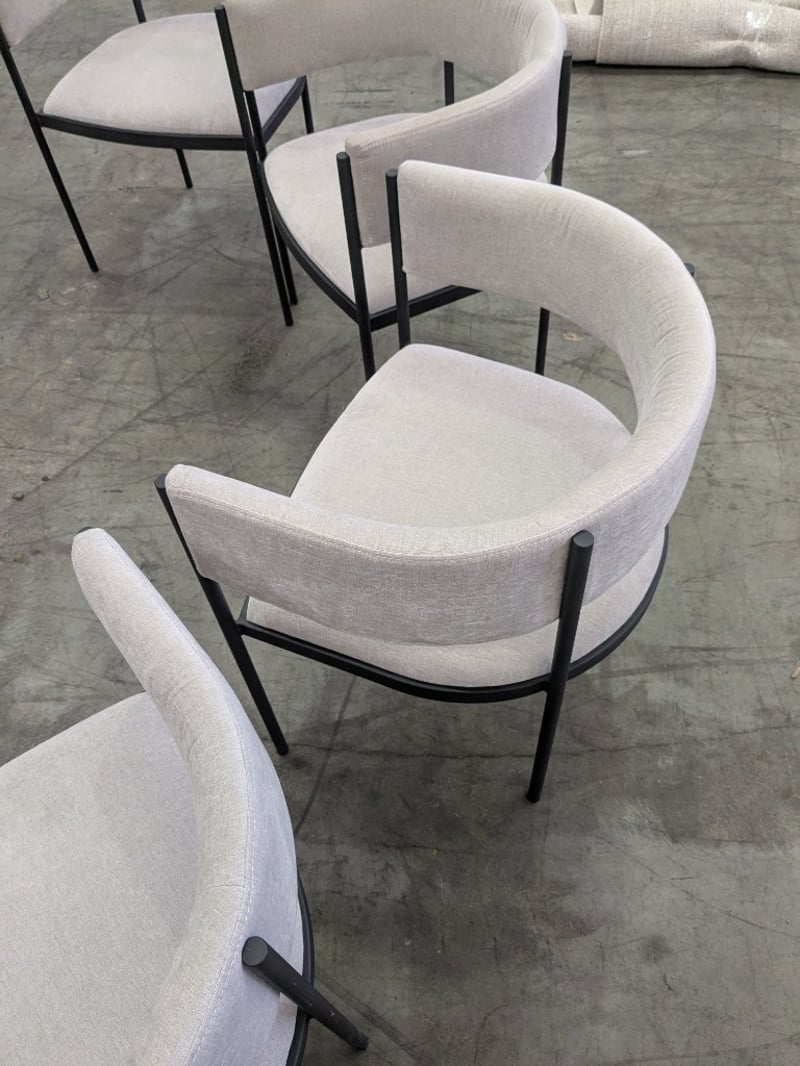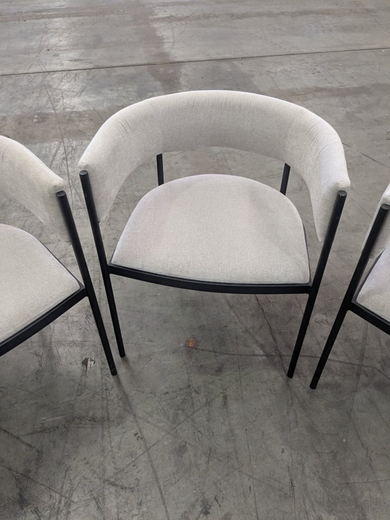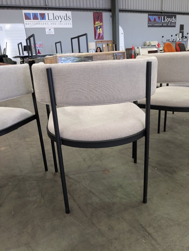 Dining Chairs with Grey Fabric backing and Seat and black Metal legs/frame.Sold as lot.