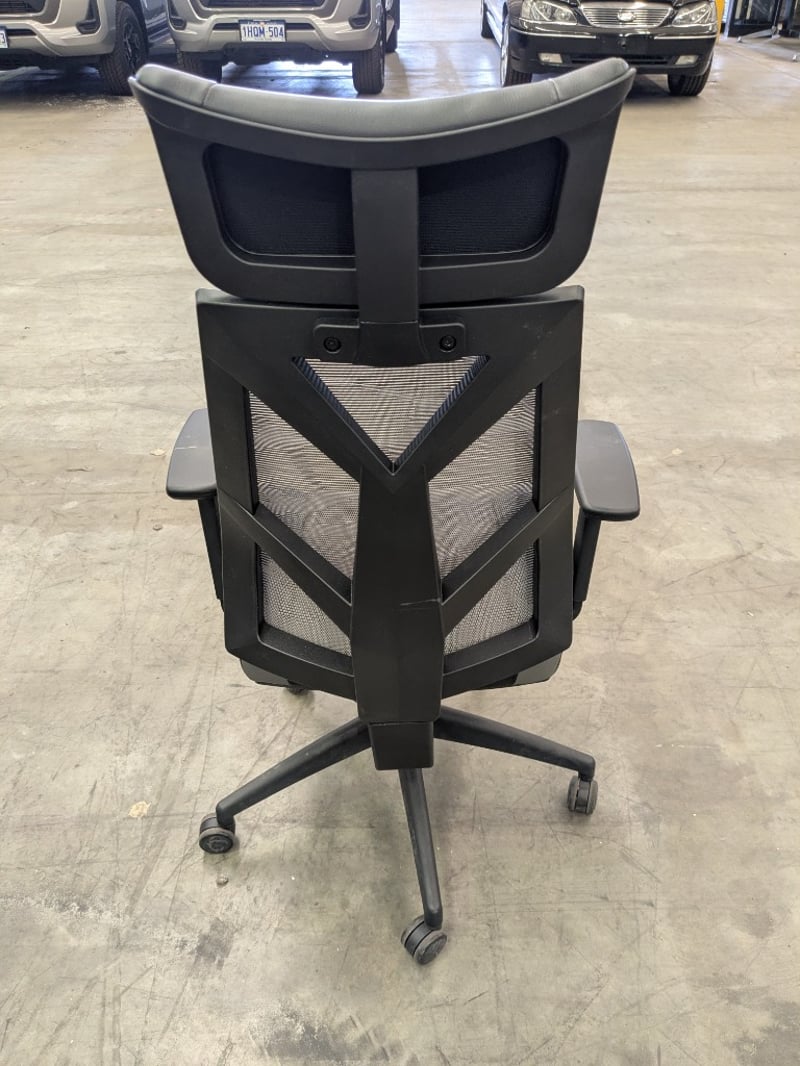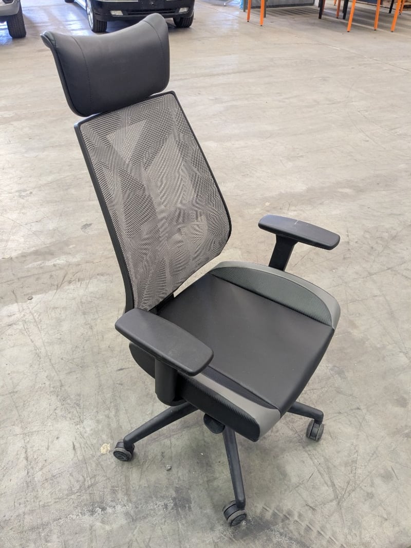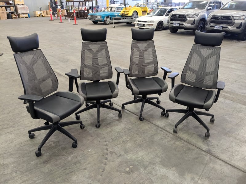 Office Chairs, High Back with Arm & Head Rest, Black & Gray Leather & Plastic Style Finish, Adjustable Height & Back, Qty 4 Items Sold as Lot
