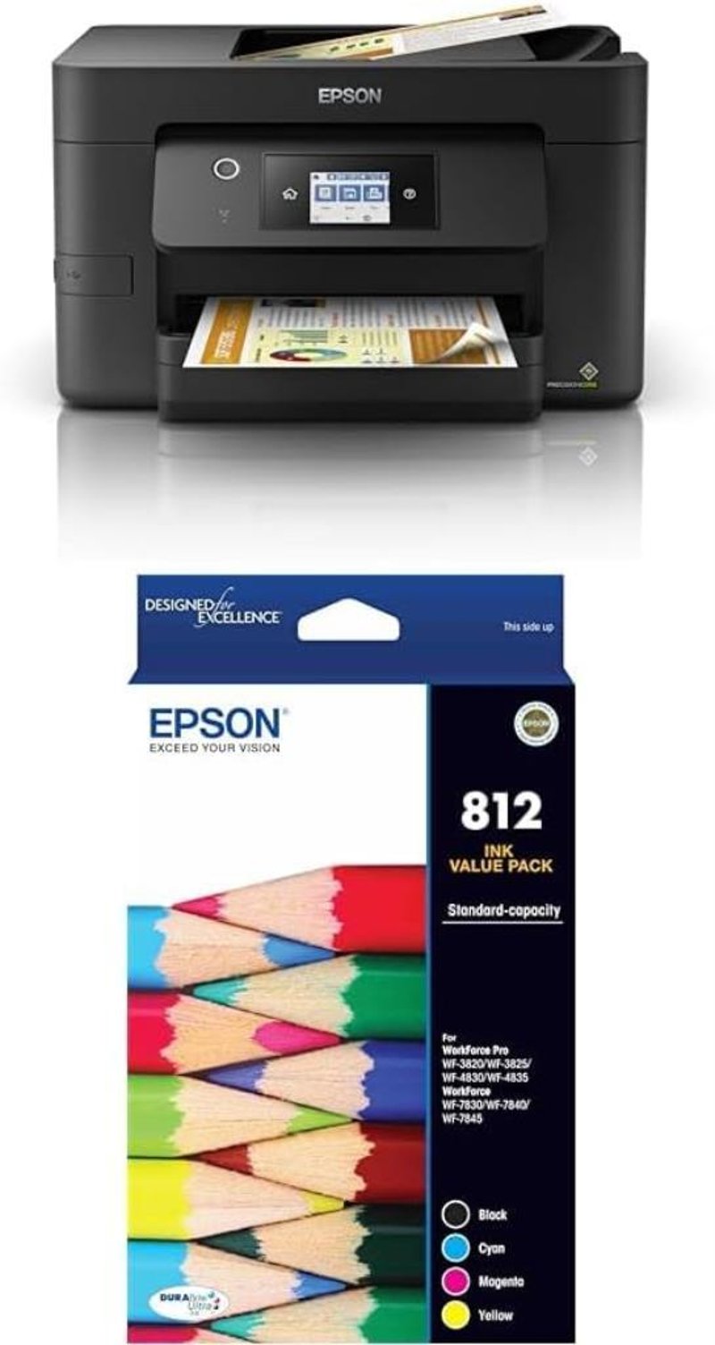 RRP $259 Epson Workforce Pro WF-3825 Multifunction Printer - Black - and Epson 812 Std DURABrite Ultra Ink Value Pack - RETAIL RETURN UNUSED PRISTINE CONDITION