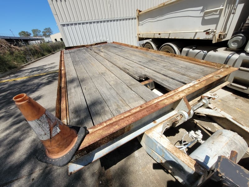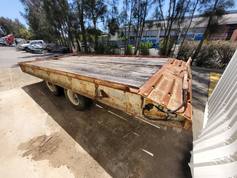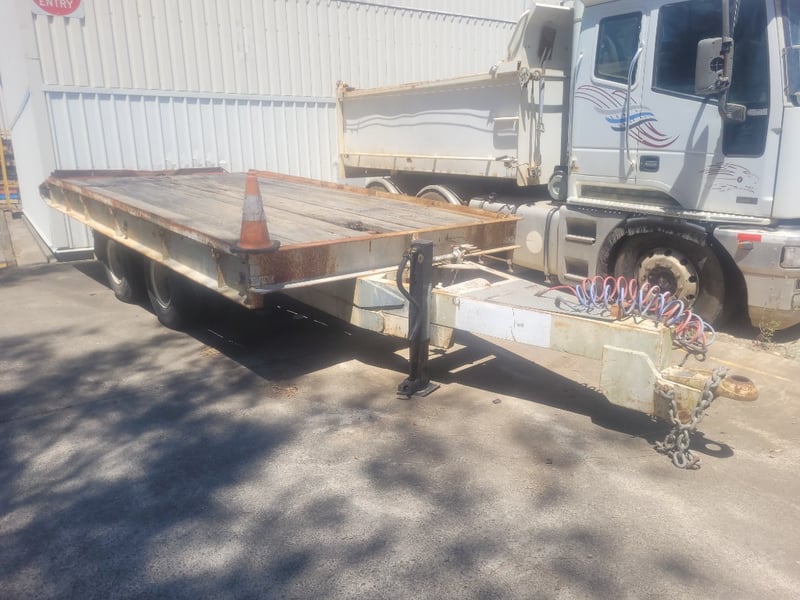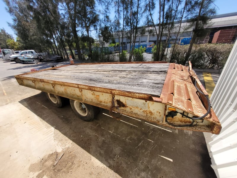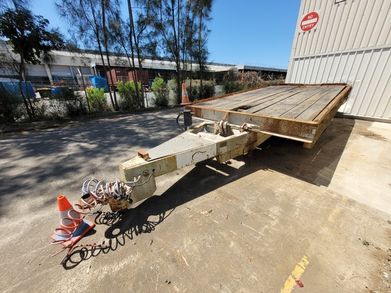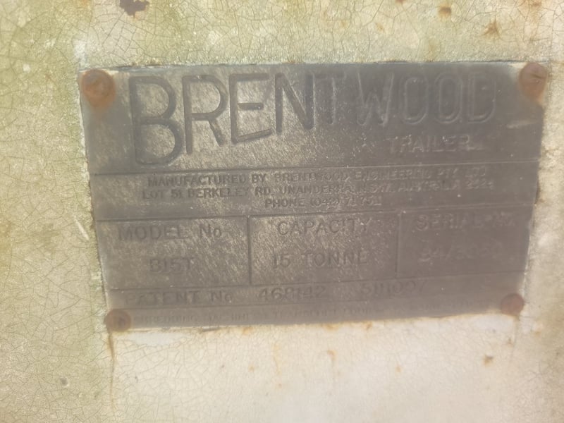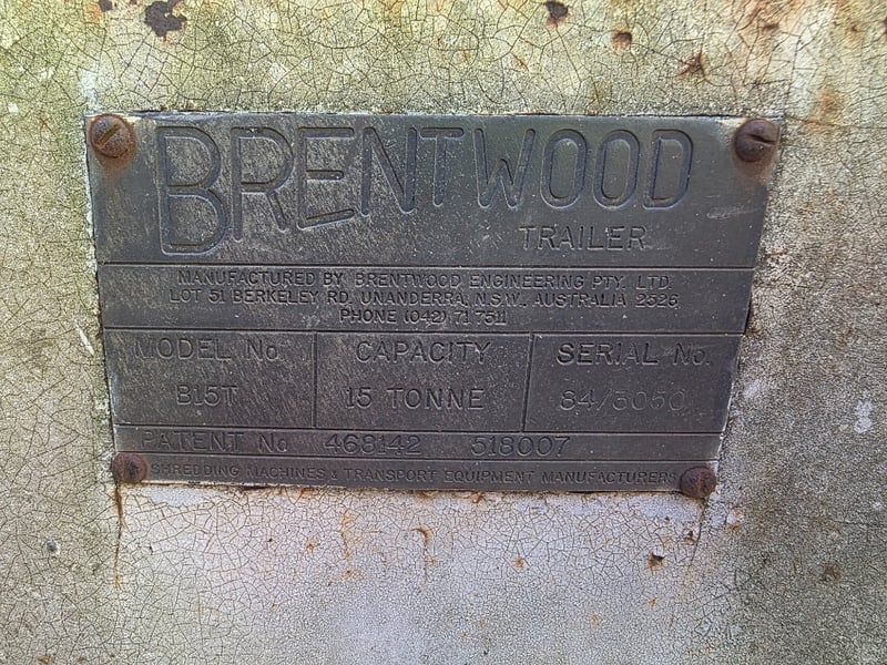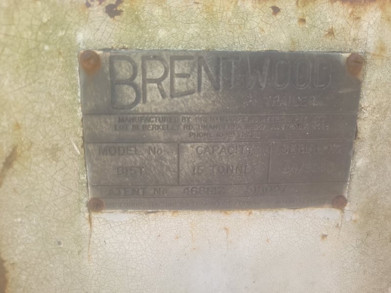 Description/Extras: 1984 Brentwood B15T Flat Top plant Trailer, capacity 15 Tonne,