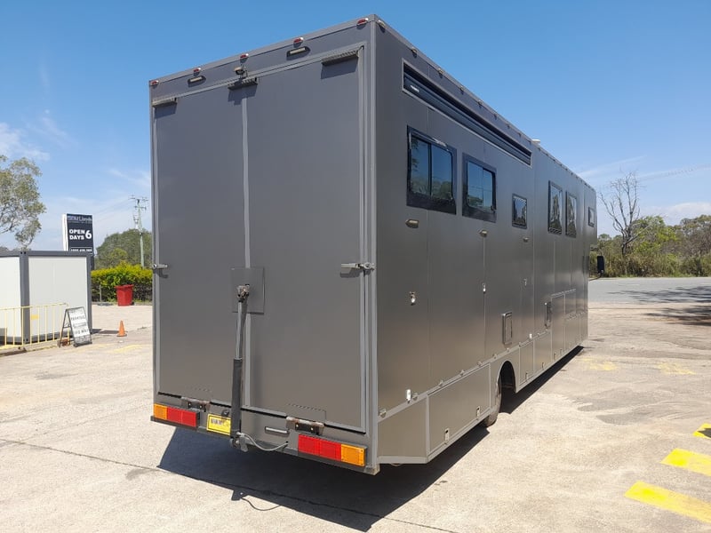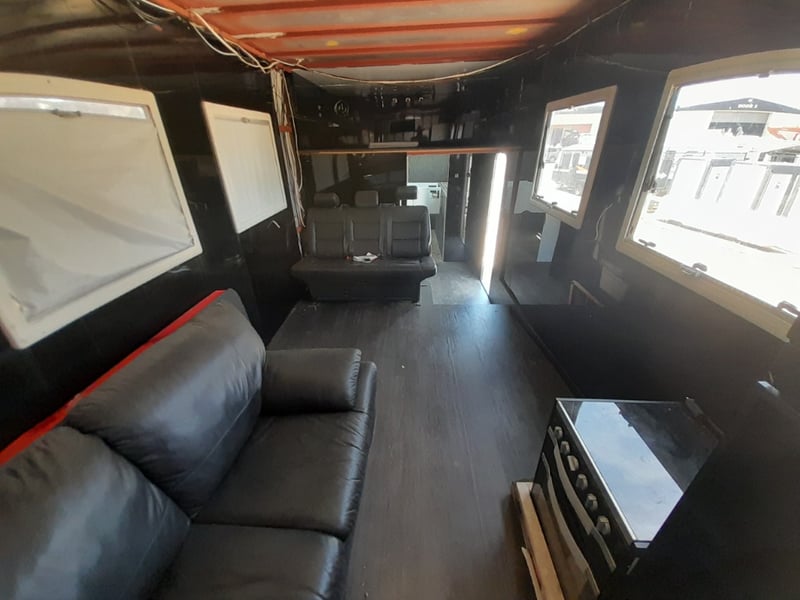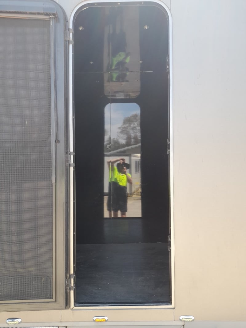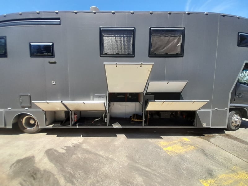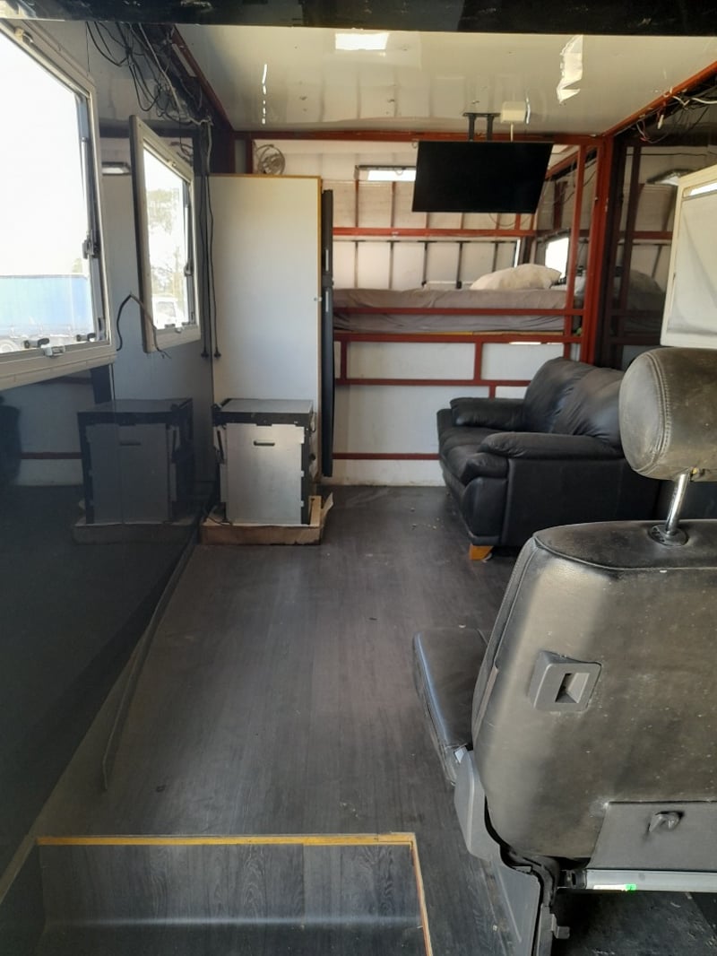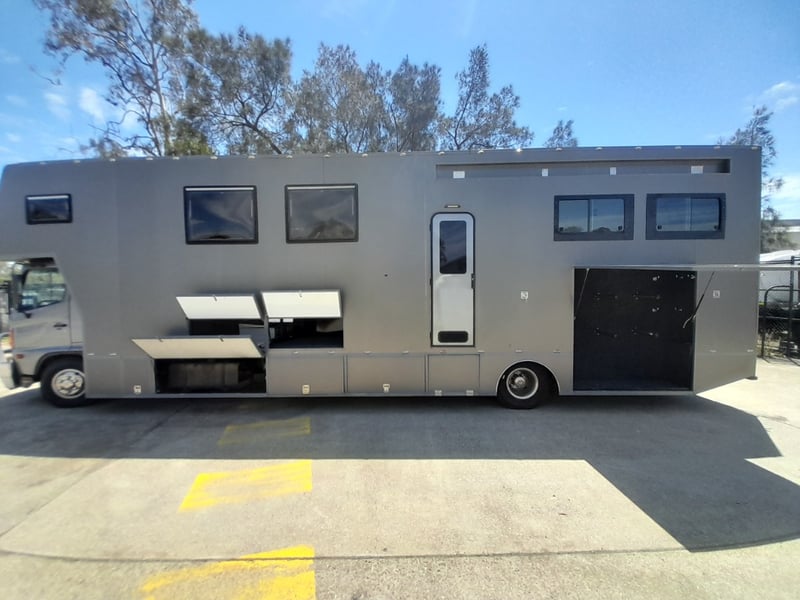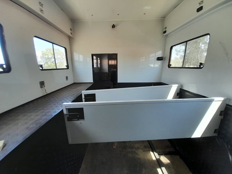 Description: horse float/ motor home, air con cab, 360 camera view small sleeper, cd player, drink holders in working condition, solar system with Inverter, battery and running equipment, plenty of storage, couch, fridge microwave and plenty of space