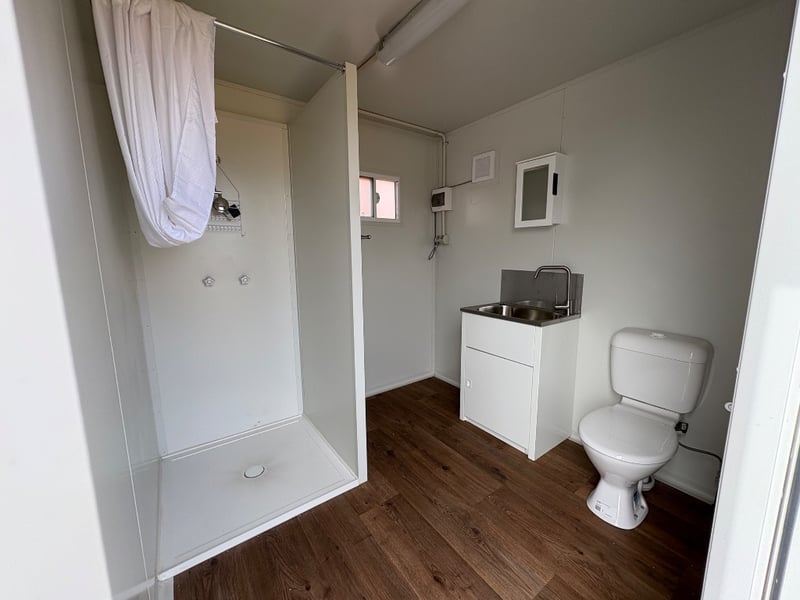 Relocate Bathroom, Single 10ft Bathroom, Built on C Channel for Transport, Wall Built with Insulated Panels, Lockable Door, Small Window, Toilet, Shower, Laundry Tub, Towel Rail and Power Points Size: 2.45m W x 2.4m L x 2.8m H LOCATION: Dubbo, NSW CONTACT: Glenn Aylward on 0418 665 100 or [email protected]