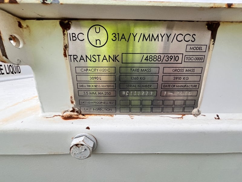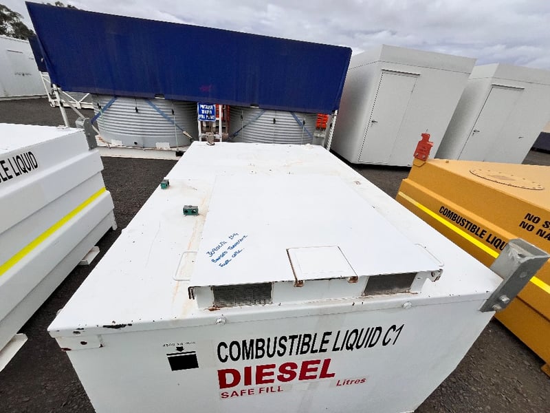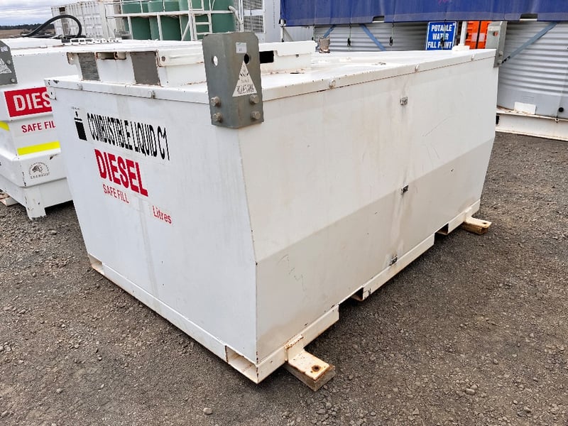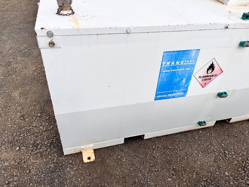 Diesel Tank, Transtank, Self Bunded Diesel Tank, Safe Fill 3090 Litres, Serial No. HC131227 D.O.M. 1-2014 Model: TGC-3000 Capacity: 3090L Tare Mass: 1360kg Gross Mass: 3910kg Only has 2 lifting points Size: 1800mm x 2300mm x 1350mm LOCATION: Dubbo, NSW CONTACT: Glenn Aylward on 0418 665 100 or [email protected]