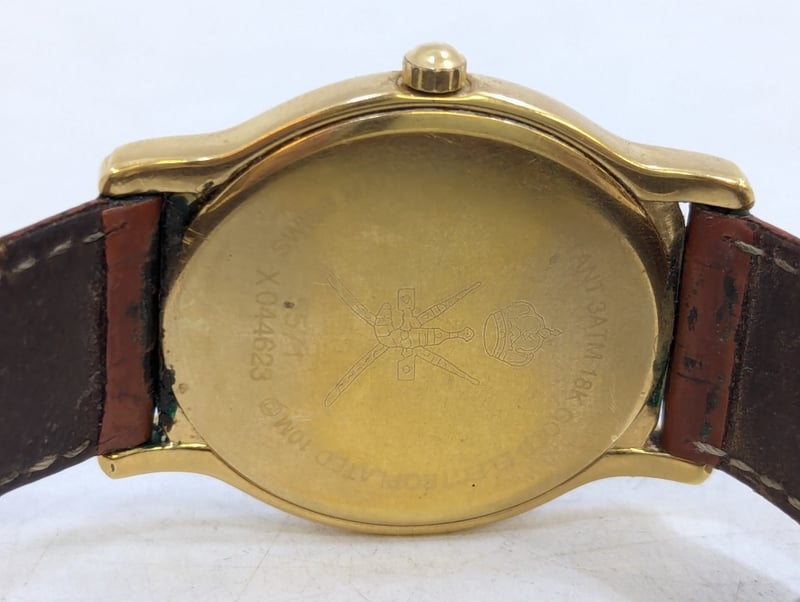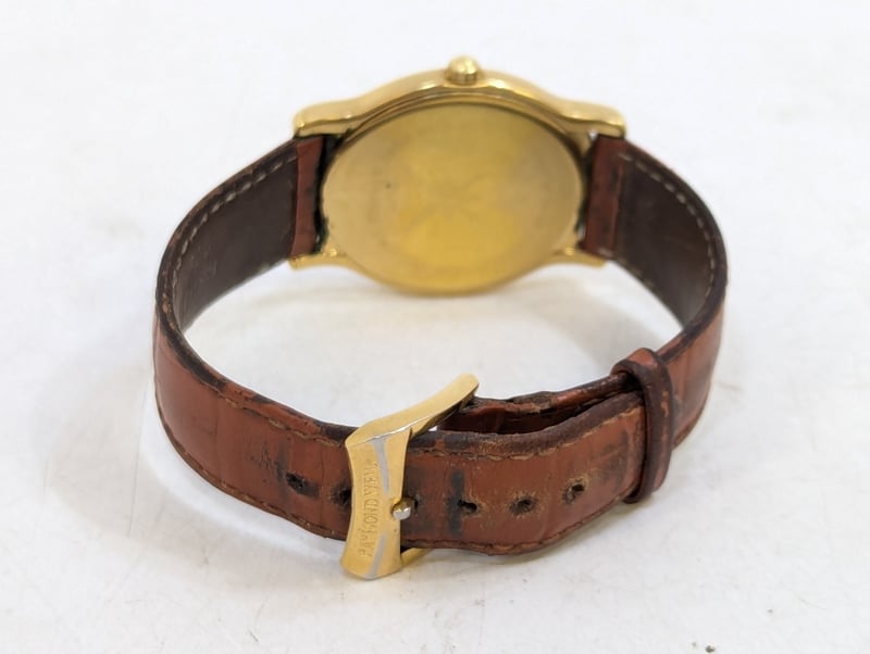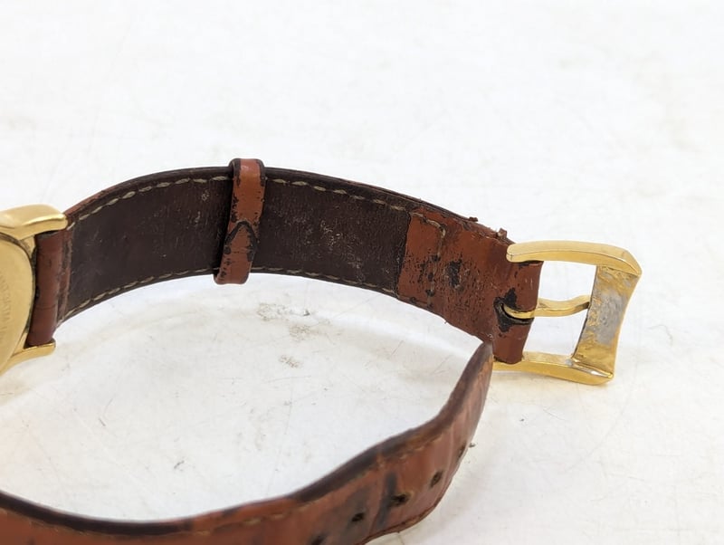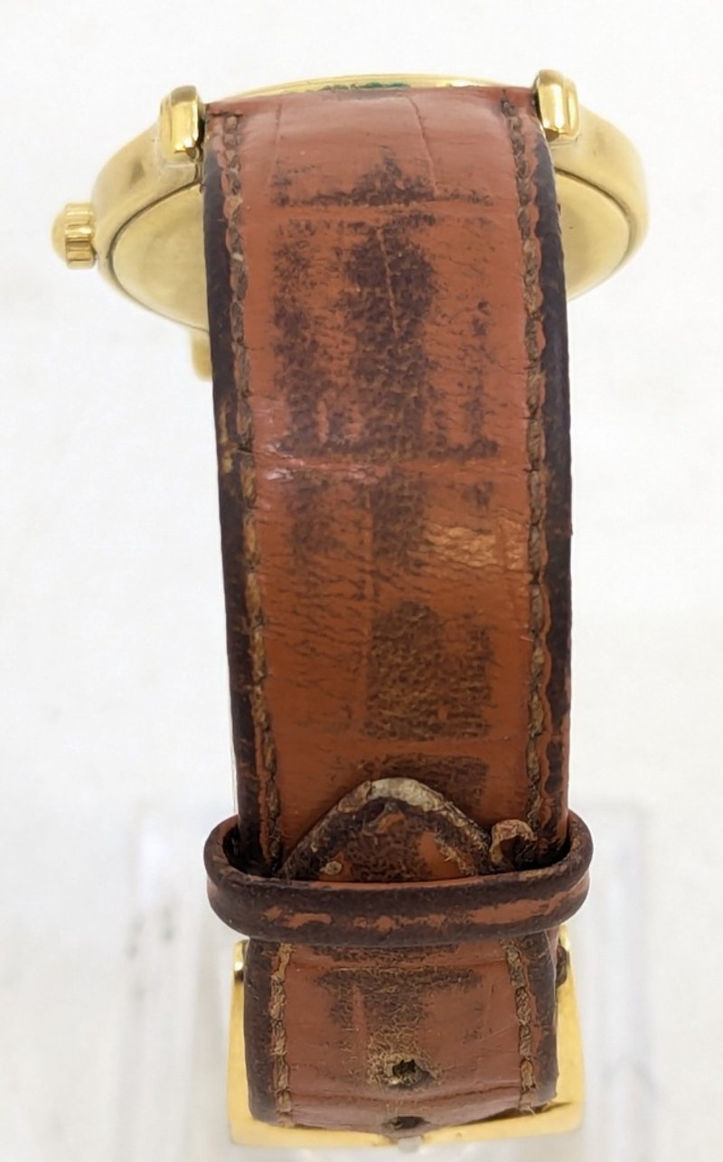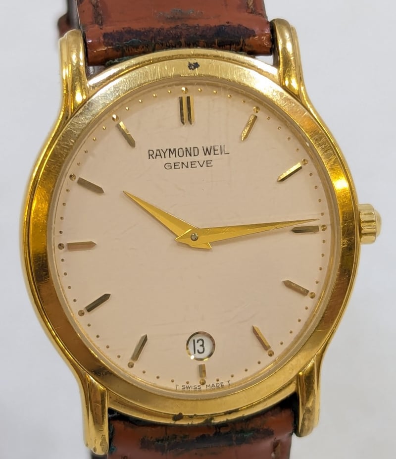 RAYMOND WEIL ELLIPSE GENEVE 5571 DIAL: WHITE DIALCASE DESCRIPTION: 18K GOLD ELECTROPLATEDCASE SIZE: 32MMBRACELET: LEATHER STYLEBOX: NOT INCLUDEDPAPERS: NOT INCLUDEDCondition: Good - Refer To ImagesAdditional Information: Non Numerical Hour MarkersDate Display At 6 O'Clock PositionBuckle ClaspWater Resistant: 3 Atm585005+2