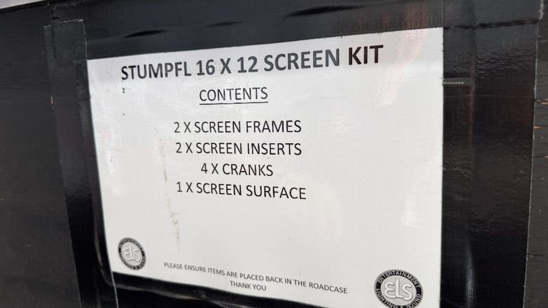 Road Case, Wheels, STUMPFL 16 X 12 SCREEN KIT CONTENTS 2 X SCREEN FRAMES 2 X SCREEN INSERTS 4 X CRANKS 1X SCREEN SURFACE Location: Burleigh, QLD Contact: Jamie Fountain on 0486 045 295 or [email protected] Collections must occur Monday 24th to Wednesday 26th of November between 9am to 4pm, once full cleared funds have been received. Collection dates to be strictly adhered to. Items not collected during this period will likely be deemed as abandoned