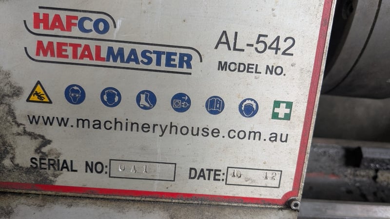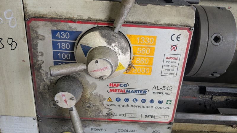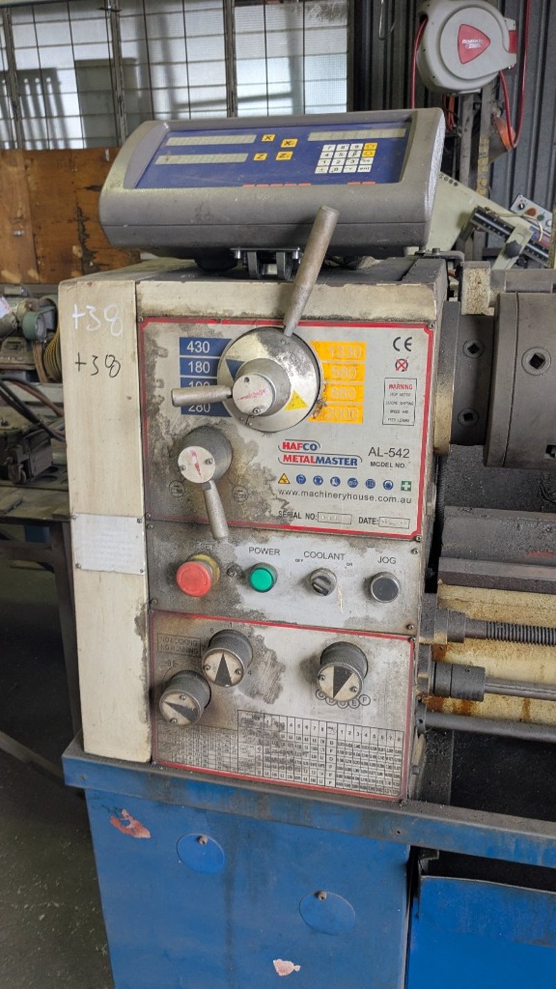 Hafco MetalMaster Al-542 LatheBrand: Hafco MetalMasterModel:Al-542Serial no: 041Date of Manufacture: 10/12Description/Extras: 3 and 4 Jaw Chucks, Easson Control Panel, Work Light, 240v Power, 400 x 1000mm turning capacity, Quick Change Tool Post, Foot Operation BrakeDimensions: 1830mm(W) x 520mm(D) x 1300mm(H)NOTE: IN WORKING ORDER, INSPECTIONS HIGHLY RECOMMENED, BUYER TO PROVIDE OWN LABOUR AND TOOLS FOR SAFE REMOVAL OF ASSETLocation: Archerfield, QLD Contact: Jamie Fountain - 0486 045 295 or [email protected]