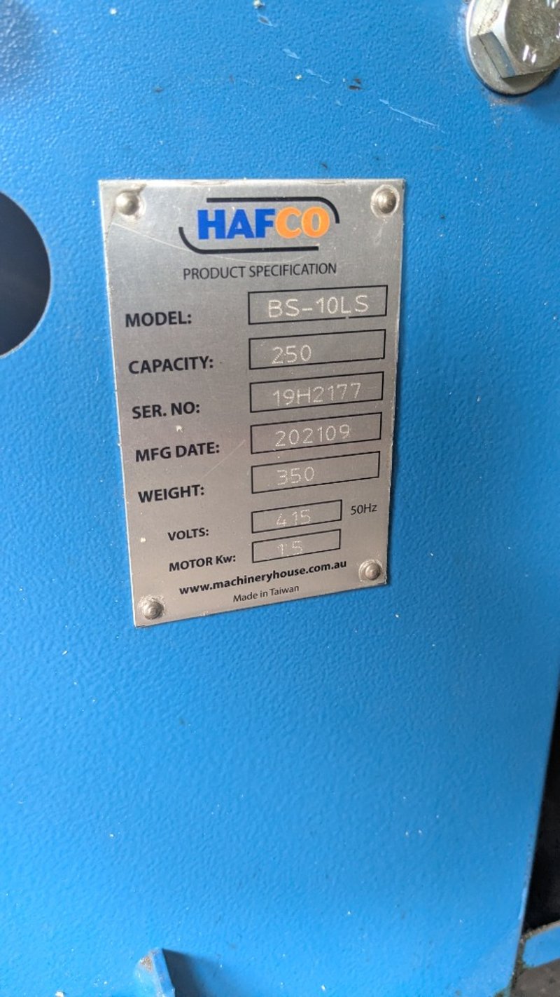 Hafco BS-10LS BandsawBrand: HafcoModel: BS-10LSSerial no: 19H2177Date of Manufacture: 2021/09Description/Extras: 3 Phase 2hp Motor, E Stop Dimensions: 1200mm(W) x 600mm(D) NOTE: IN GOOD WORKING ORDER, INSPECTIONS HIGHLY RECOMMENDEDLocation: Archerfield, QLD Contact: Jamie Fountain - 0486 045 295 or [email protected]