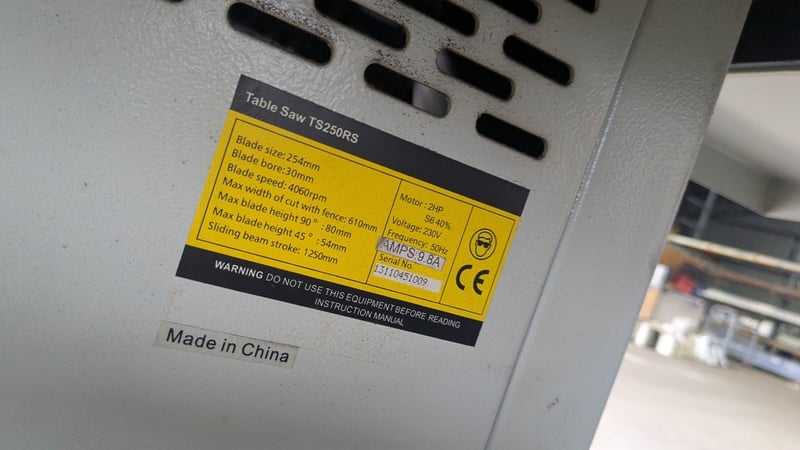 Description/Extras: 240v Power, 254mm Blade, Metal Construction, E Stop
