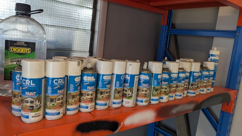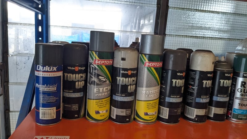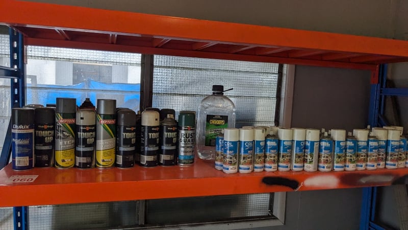 Assorted Spray Paint Cans, Various Colours, Quantity Shelf