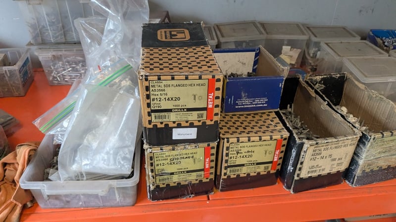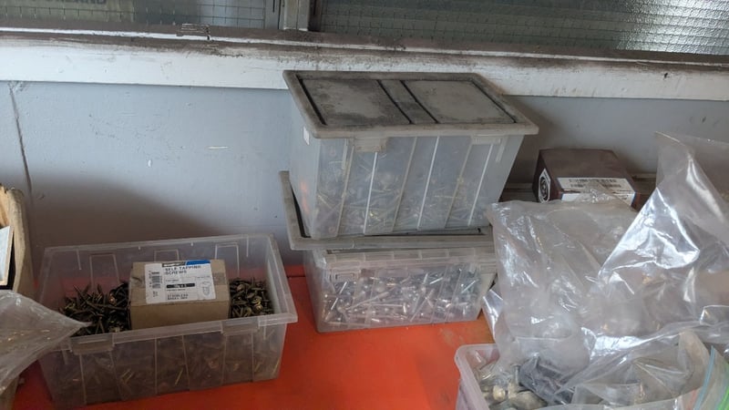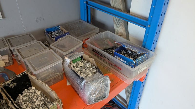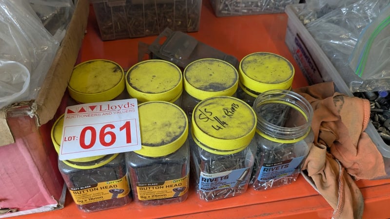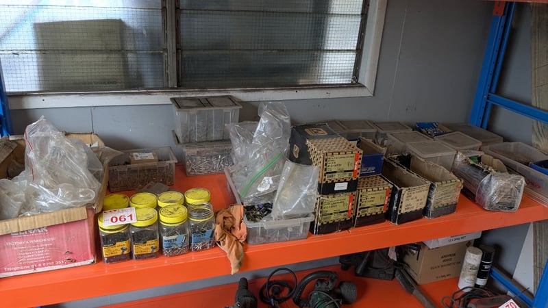 Assorted Hardware Items, Includes Screws and Rivets, Quantity to Shelf