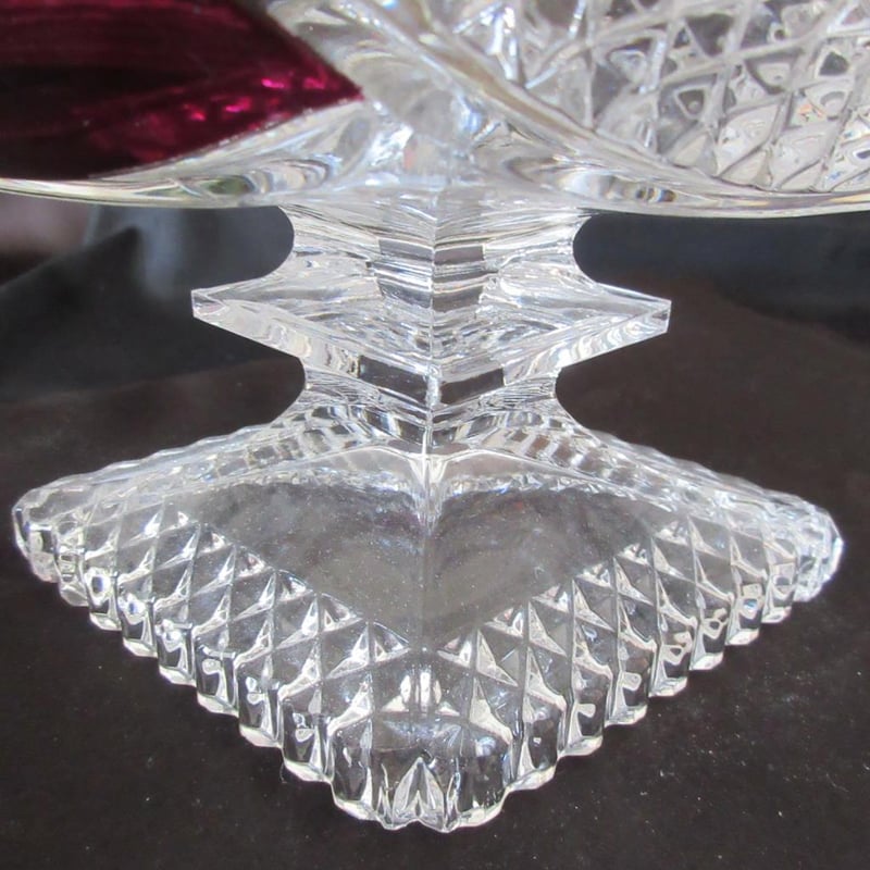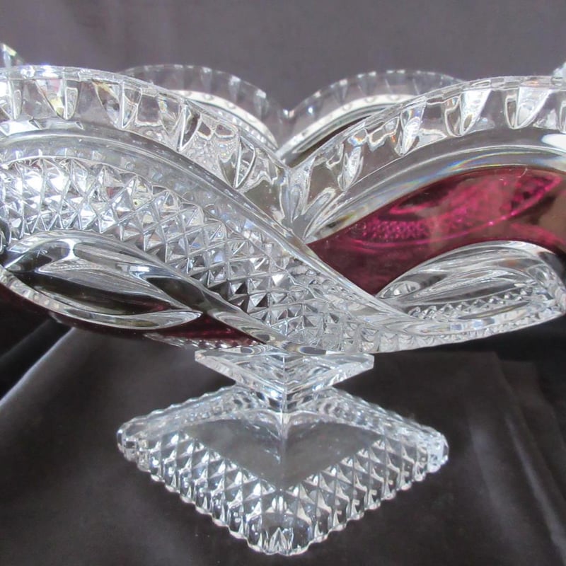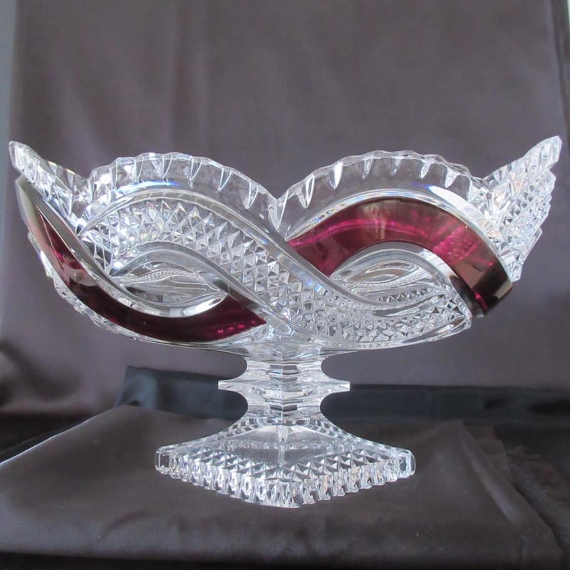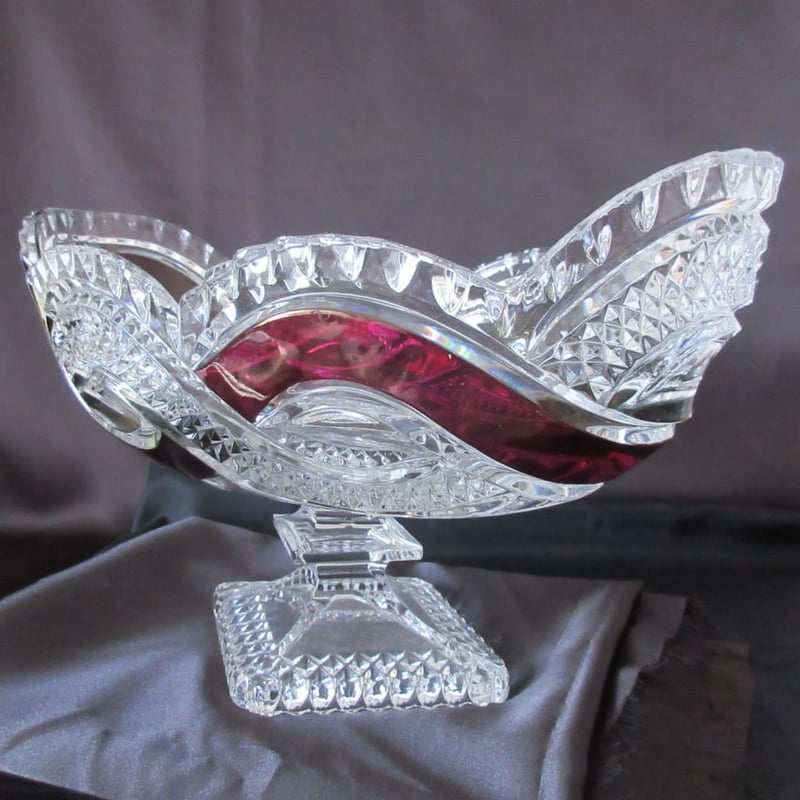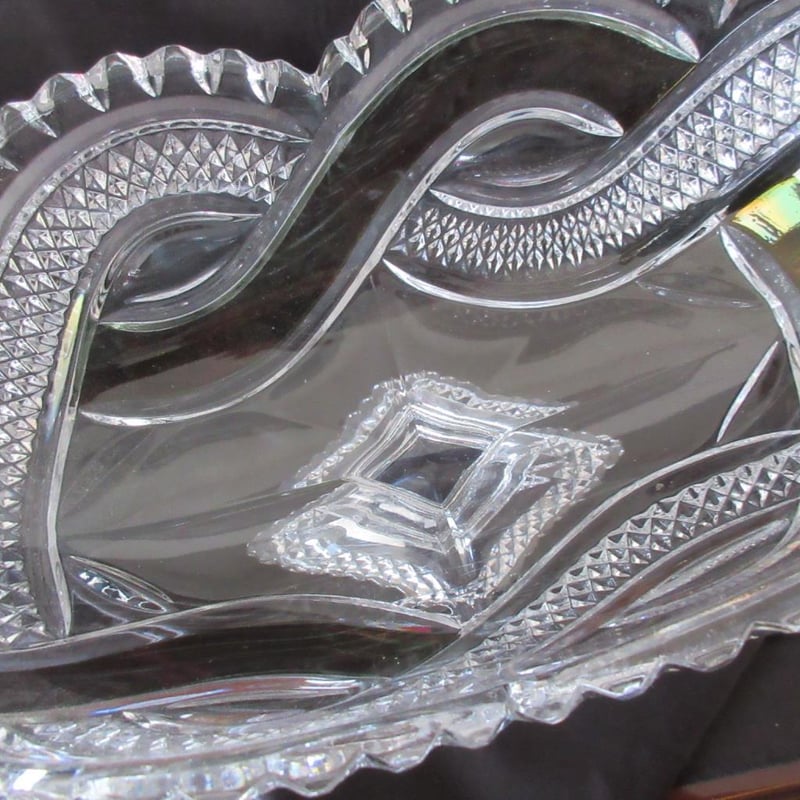 Estate Impressive Very Large Bleikristall Crystal Boat Shape Centrepiece Footed Bowl (approx 31cm wide x 20cm high)