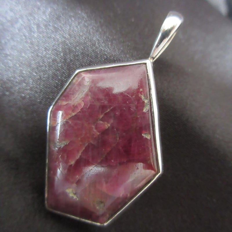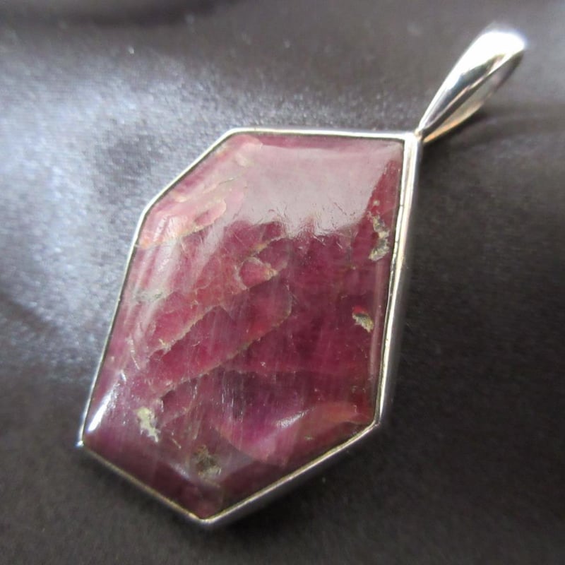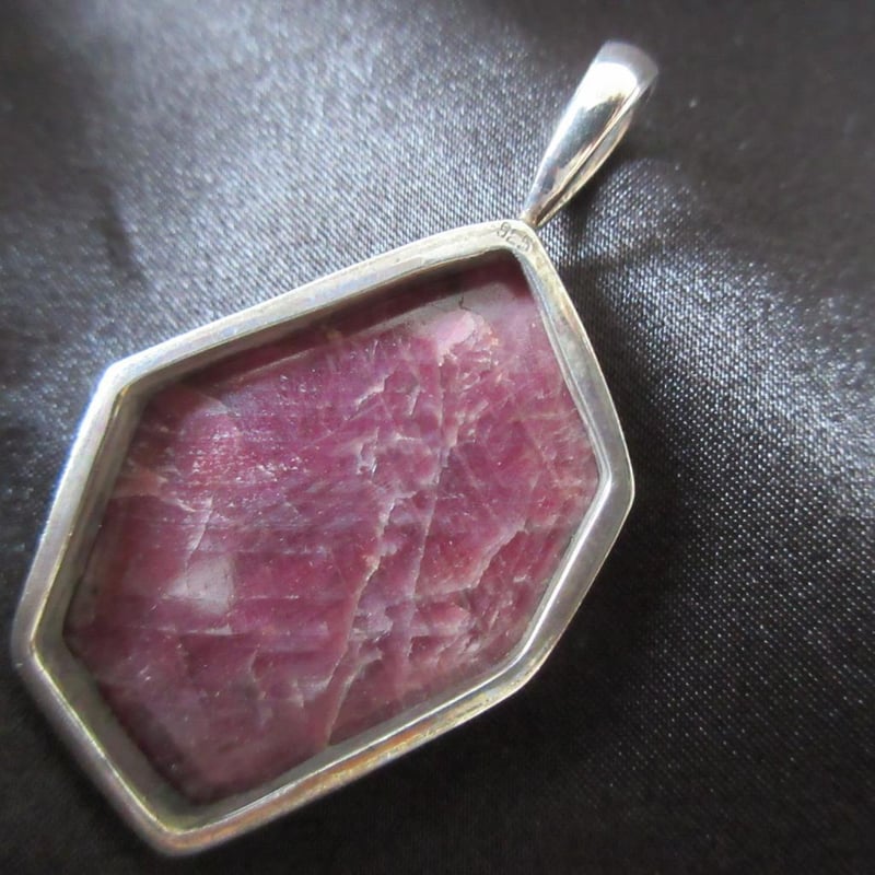 Estate Very Large Natural Ruby Sterling Silver Angular Pendant (Stamped 925) (approx 45mm x 25mm) (Boxed)