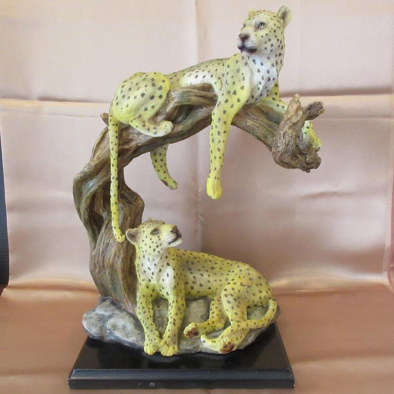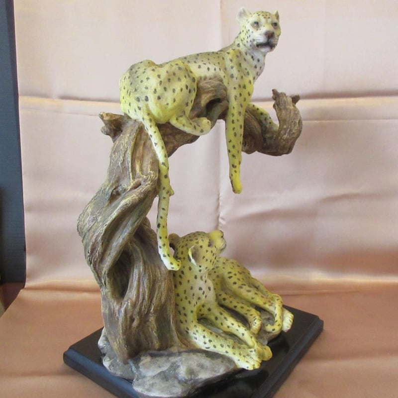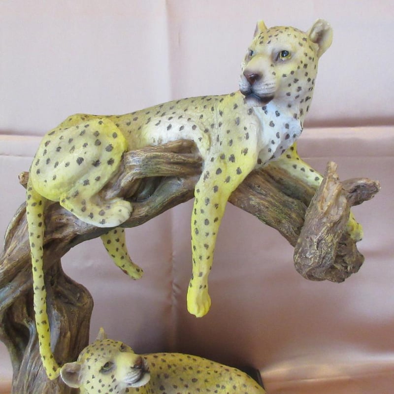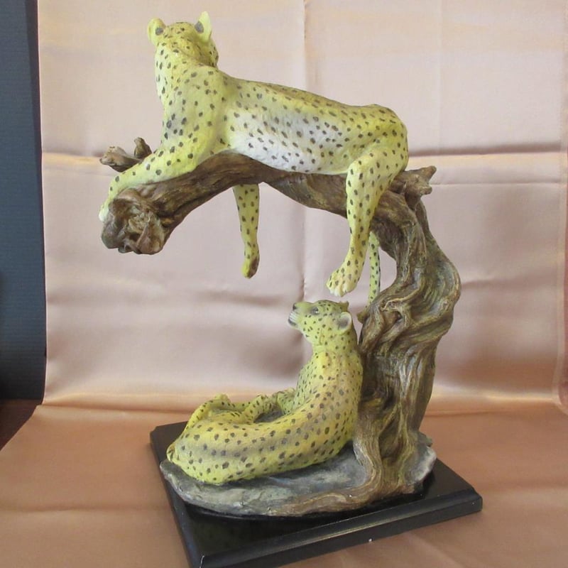 Estate Large Soulful Cheetahs Lounging In The Trees Statue On Bespoke Plinth (approx 37cm tall x 28cm wide)