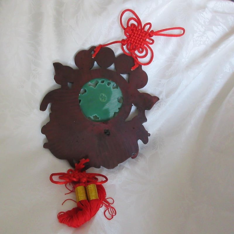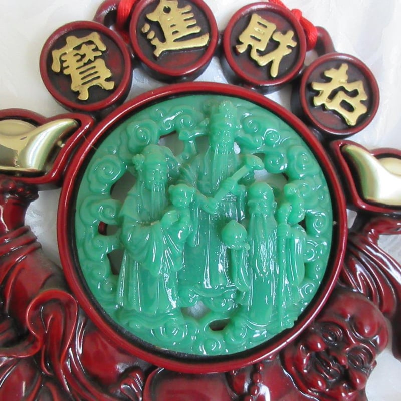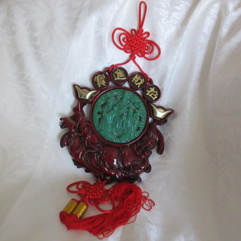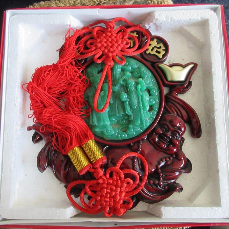 Estate Large Oriental Carved Immortals Wall Hanging (approx 55cm long x 23cm wide) In Original Box