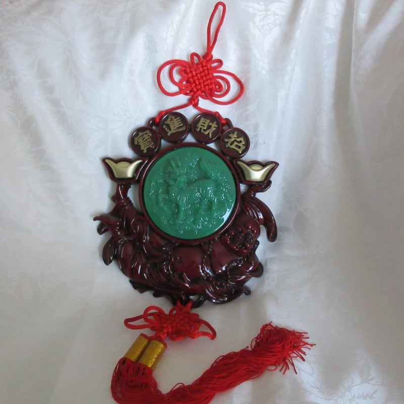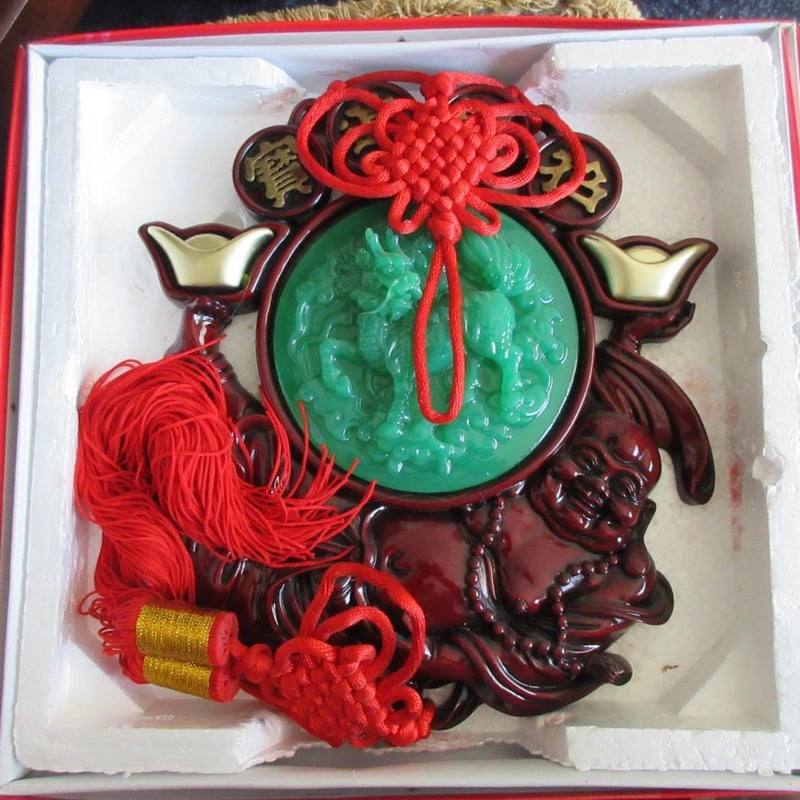 Estate Large Oriental Carved Dragon Wall Hanging (approx 55cm long x 23cm wide) In Original Box