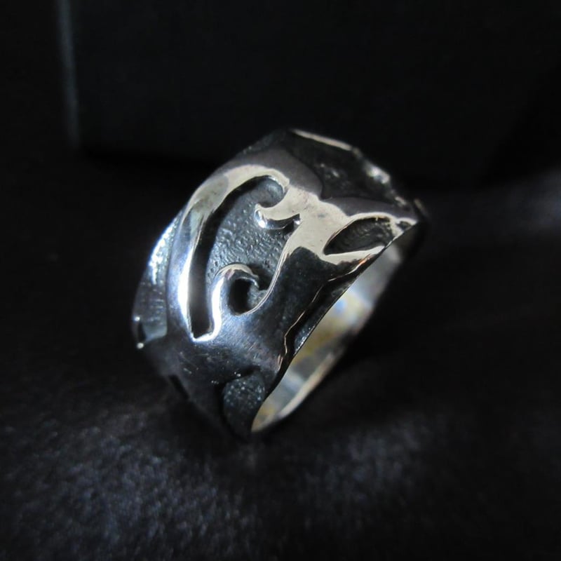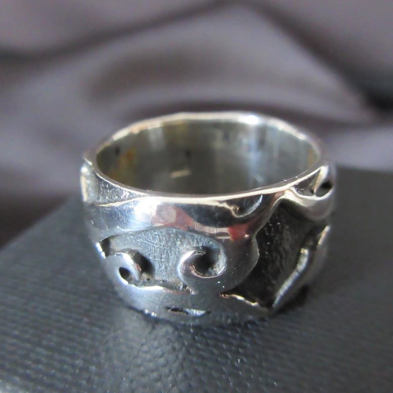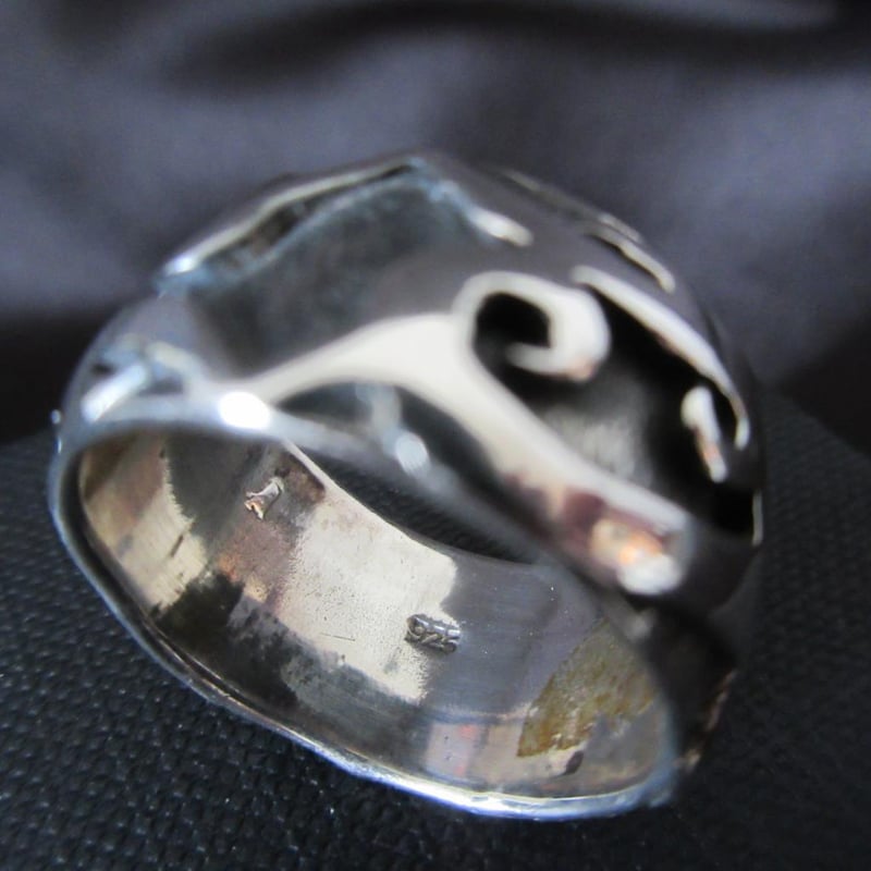 Estate Wide Band Sterling Silver Wave Scroll Ring (925) (Boxed)