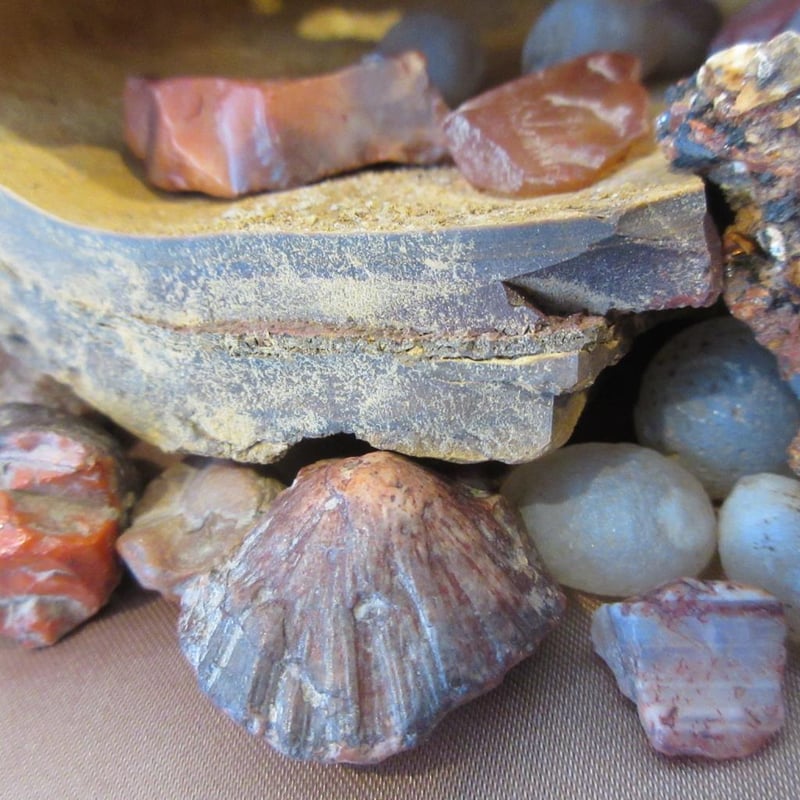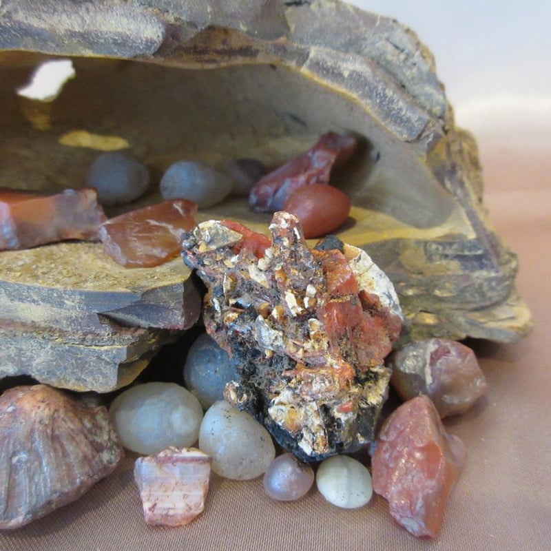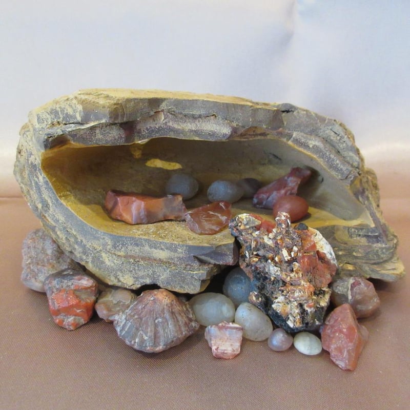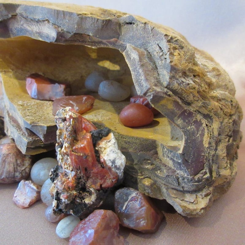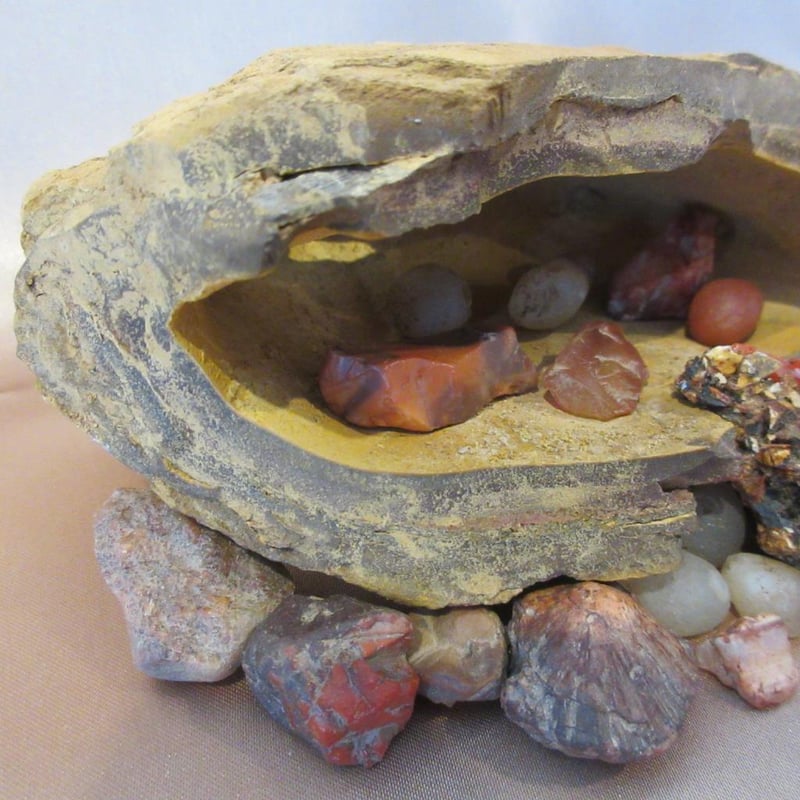 Estate Gemstone Specimens Inside Cave-Like Hollow Rock Formation (Rock approx 13cm wide x 7cm high) (Total Weight approx .8kg) (Sold as lot)