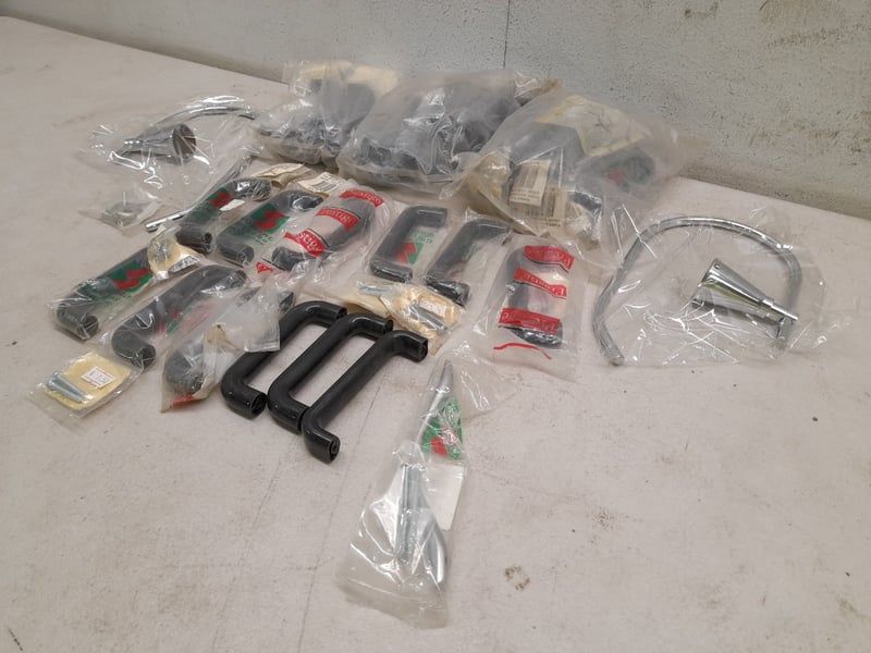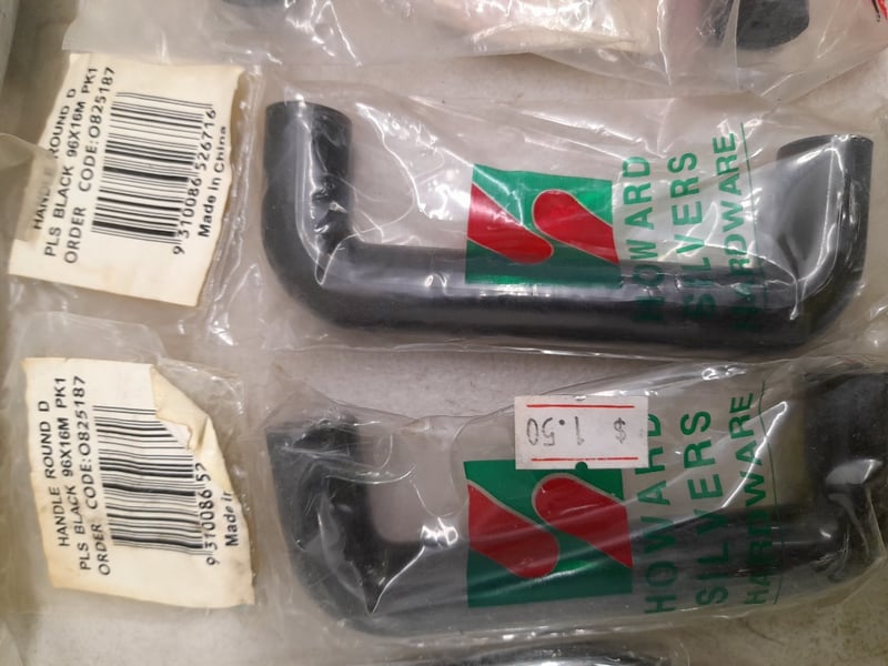 Cabinet Handles, Black PLS Round D, Chrome Towel Rings Sold as lot