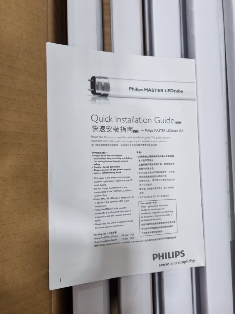 MASTER LEDtube Internal Standard 600mm 10W T8 840 10 units per box SOLD PER LOT