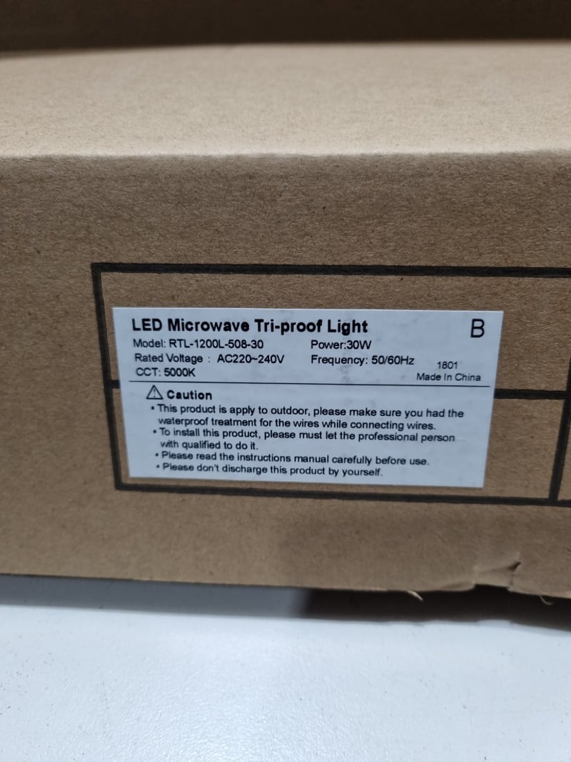 LED Microwave Tri-Proof Light 15W 5000K 600mm (RTL-600-508-15, Item no. 1801 B) L160XH25CM