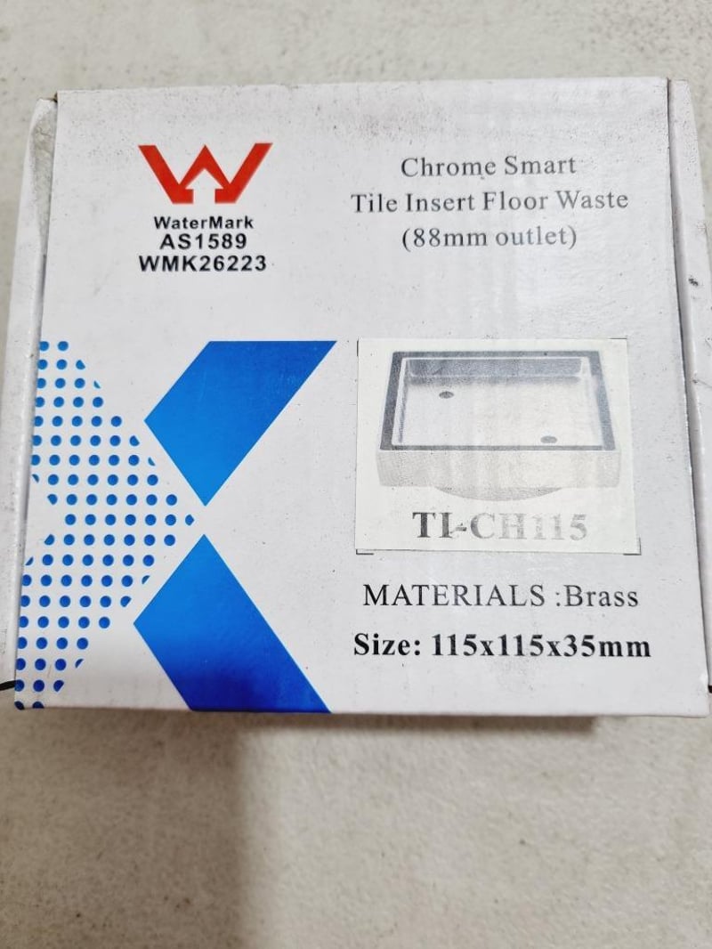 RRP $21.45, TILE Chrome Tile Insert Floor Waste 115mm,