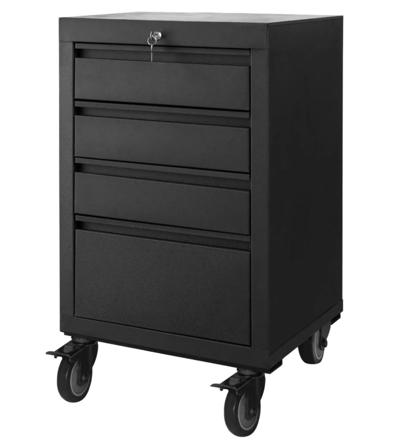RRP $379, 4 DRAWER MOBILE UNIT 810H x 520W x 500DHeavy duty designKey lockableAnti-slip Top SurfaceNon-slip drawer liningHeavy Duty CastorsPowdercoated matte black